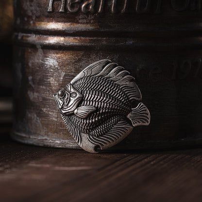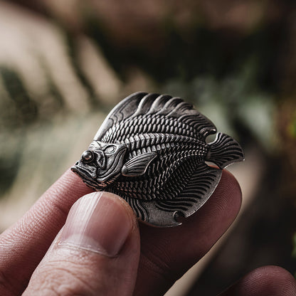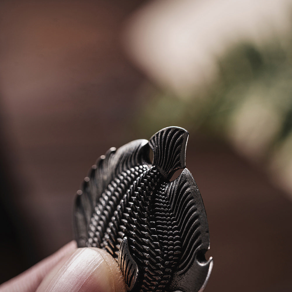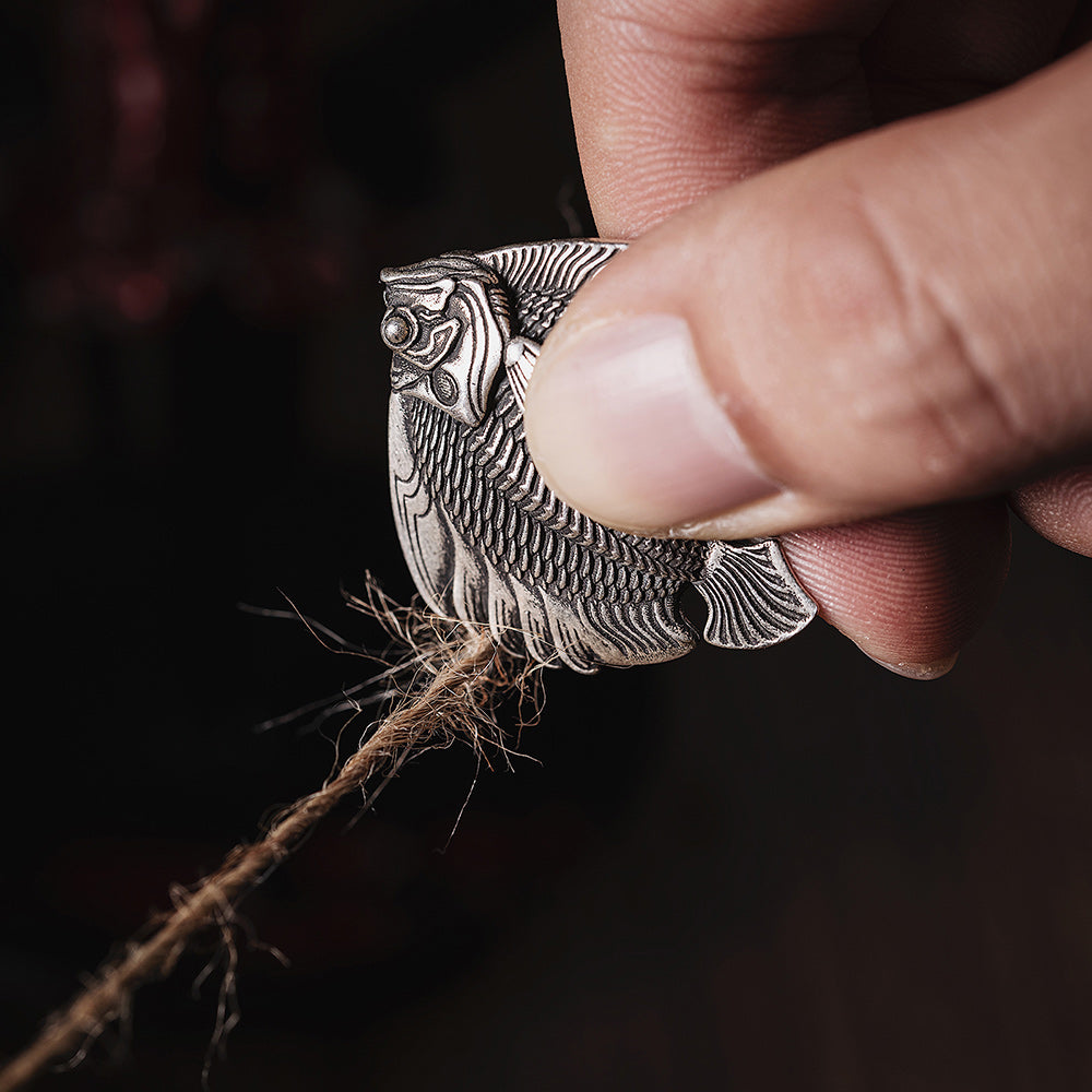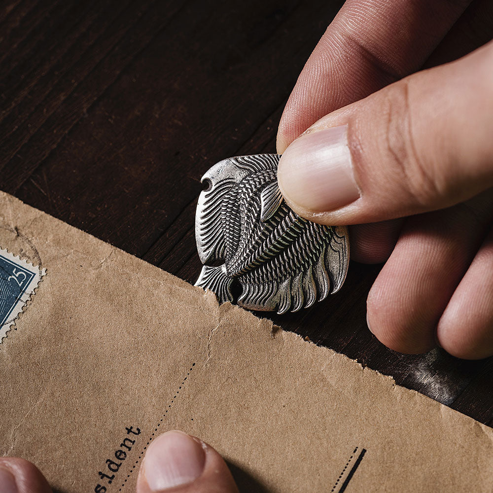 This entire piece is made of precision brass. The over 300 scales have been hand-carved by our artisans. We utilized the shape of the fish to bring you an item with multiple functions. The serrated fins in the back are great for things like twine; the slightly upwards fins at the end make a good box opener (we’ve also done a special blunting treatment so you won’t scratch your fingers while using it), and the sharp corner of the lower fin can be used for screwing. We hope our product brings convenience to you.