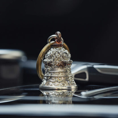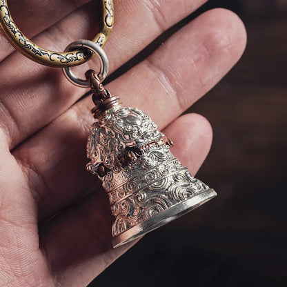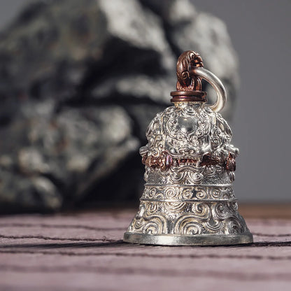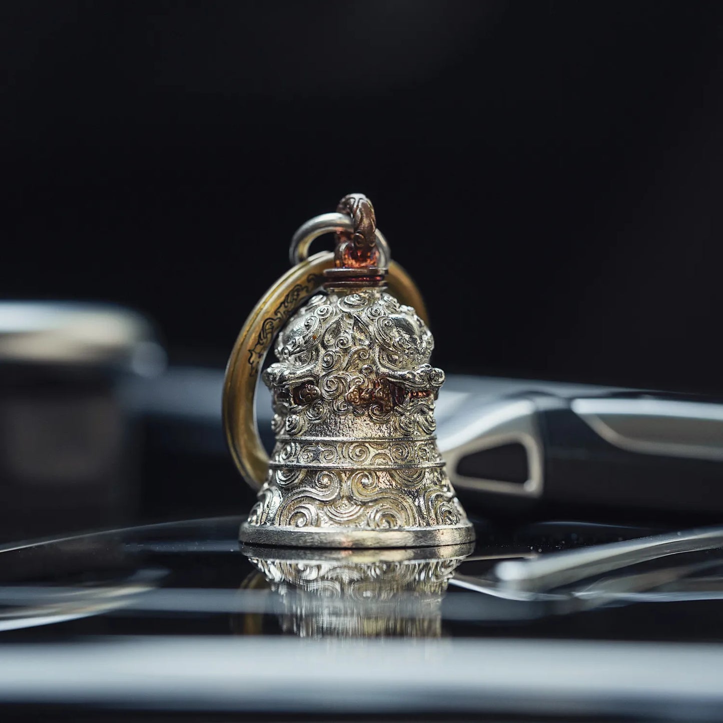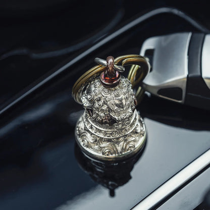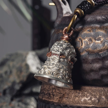 Crafted with meticulous attention to detail, this bell features a majestic lion holding a precious sword in its mouth, surrounded by traditional sea water and auspicious cloud patterns. The bell emits a crisp yet gentle sound, enhancing its allure and adding to its auspicious aura. Each element is intricately designed to ensure clarity in texture and richness in detail.