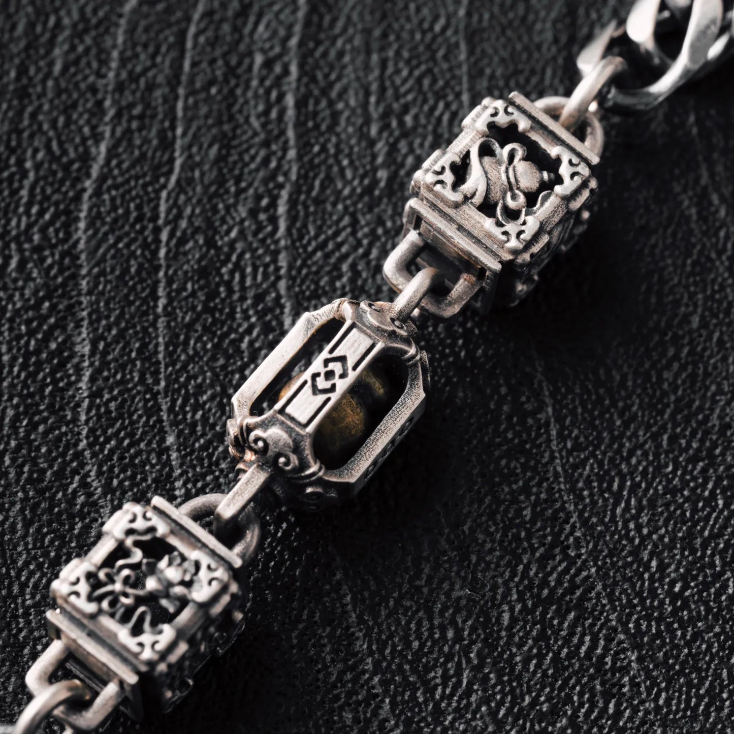 This bracelet is a statement piece that combines cultural reverence with contemporary style, making it a meaningful gift for friends and family. Its unique design, showcasing meticulous craftsmanship and high-quality materials, ensures it stands out as both a stylish accessory and a symbol of prosperity and protection. Wear it to embrace the harmony of ancient traditions or present it as a thoughtful gift that celebrates cultural richness.