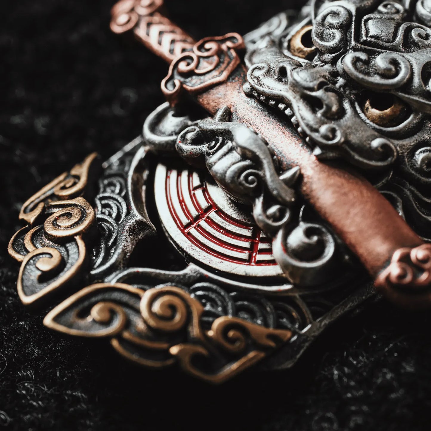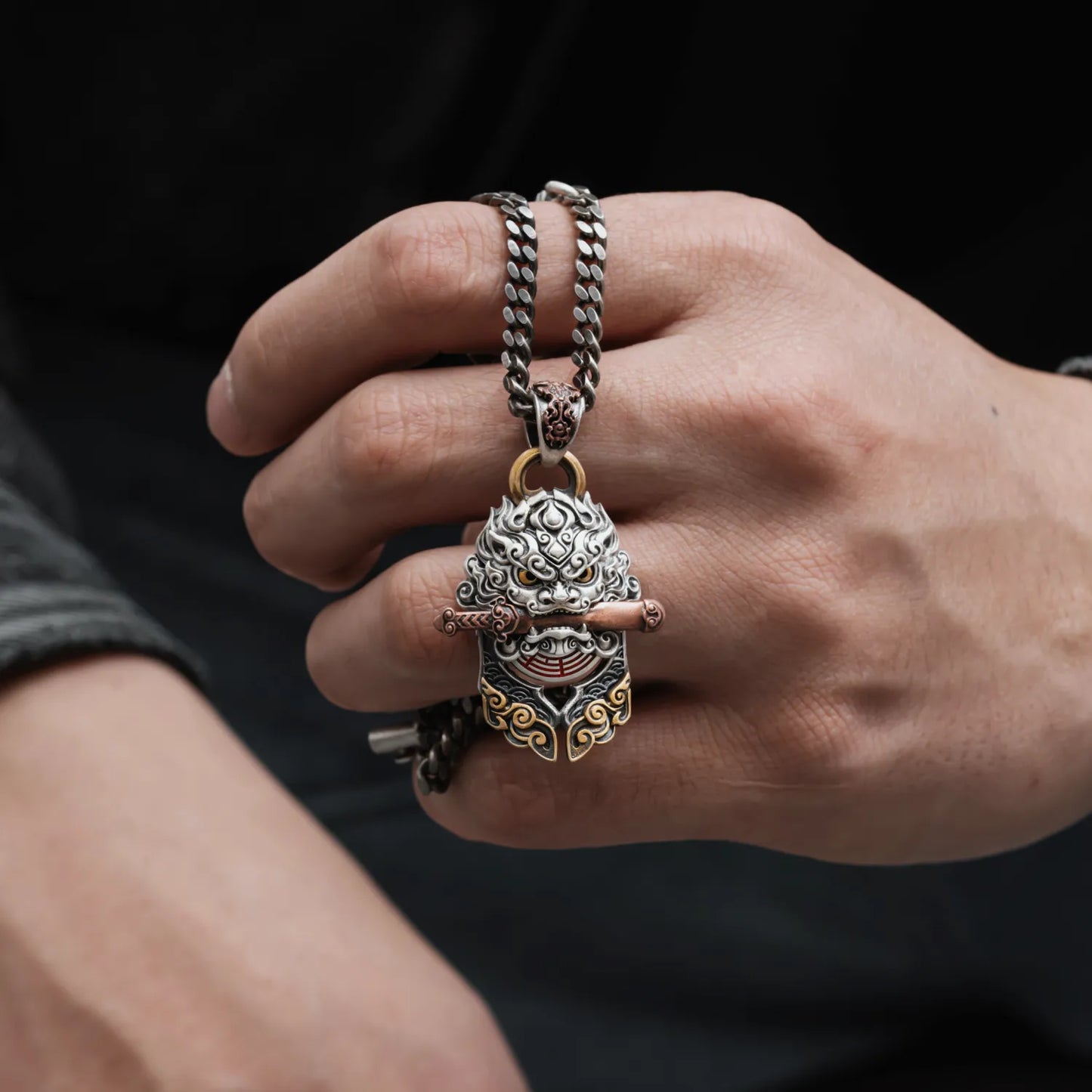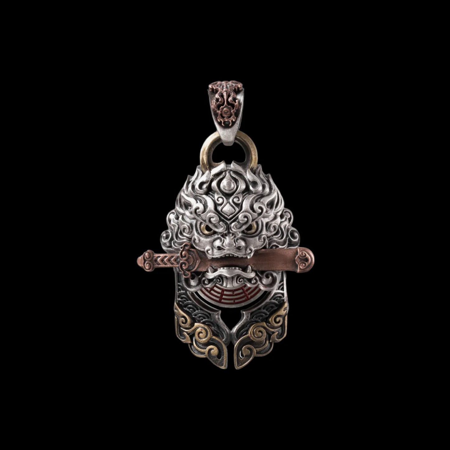 Oxidized Silver Shan Gui Lion Sword Pendant