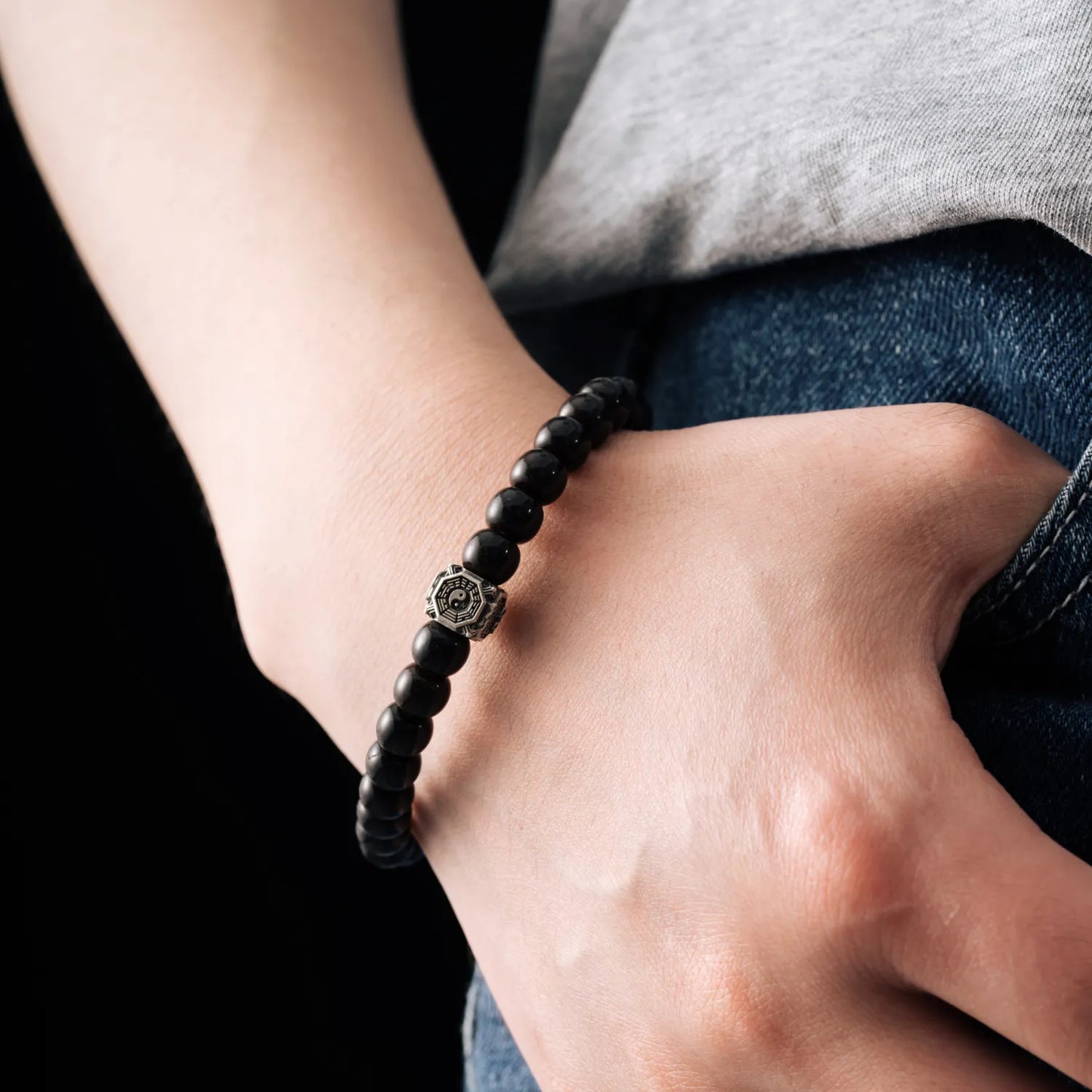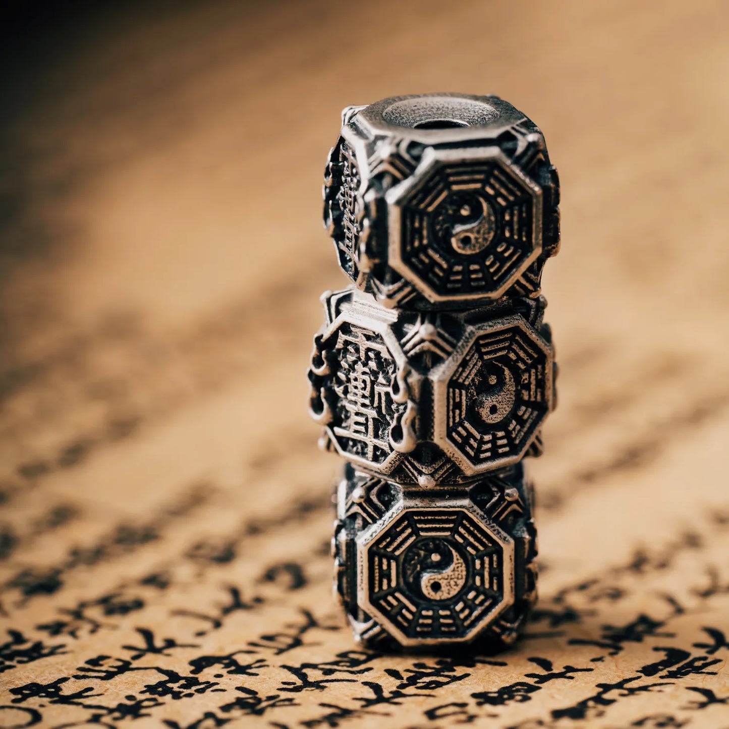 Oxidized Silver Taoist Bead
