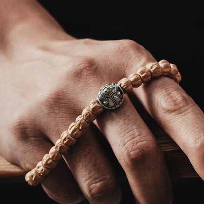 Crafted with meticulous attention to detail, this bracelet mirrors the intricate patterns of turtle shells. It features a charming design with the engraved inscription "Affluent Across Nations" on the underside, blending traditional elements with modern appeal. Made from S925 silver and brass, the bracelet showcases a harmonious contrast, with natural oxidation enhancing its antique allure.