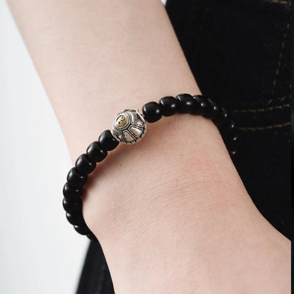 Oxidized Silver Turtle Bead Bracelet