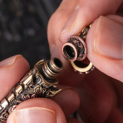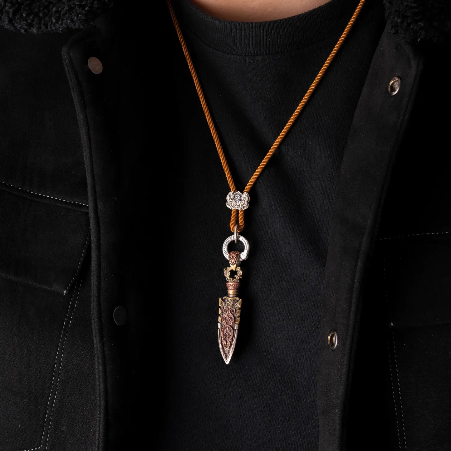 Inspired by ancient weaponry, the Arrowhead Capsule Pendant embodies the essence of determination and prowess, reminiscent of a time when precision and skill were paramount. Its triangular form pays homage to the arrowheads of old, while intricate patterns echo the majestic adornments of Han Dynasty steeds, evoking a sense of heritage and strength.