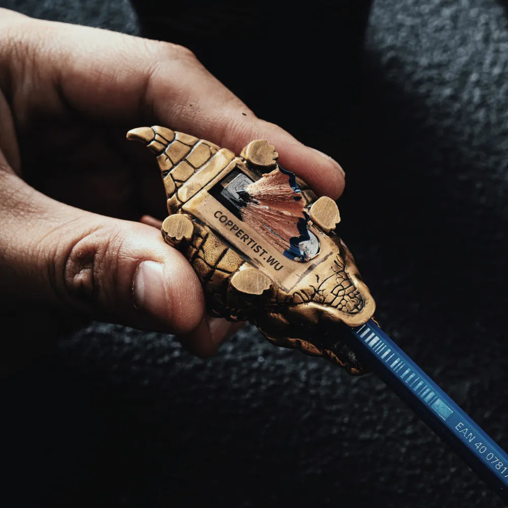Crafted entirely from brass, this pencil sharpener boasts timeless durability and a unique patina that develops over time, enhancing its aesthetic appeal. Each piece is a work of art, with high-quality German M+R blades ensuring sharp and long-lasting performance. The intricate details, from the angry expression to the textured skin, highlight the exquisite craftsmanship, transforming this practical tool into a whimsical desk ornament that blends form and function seamlessly.