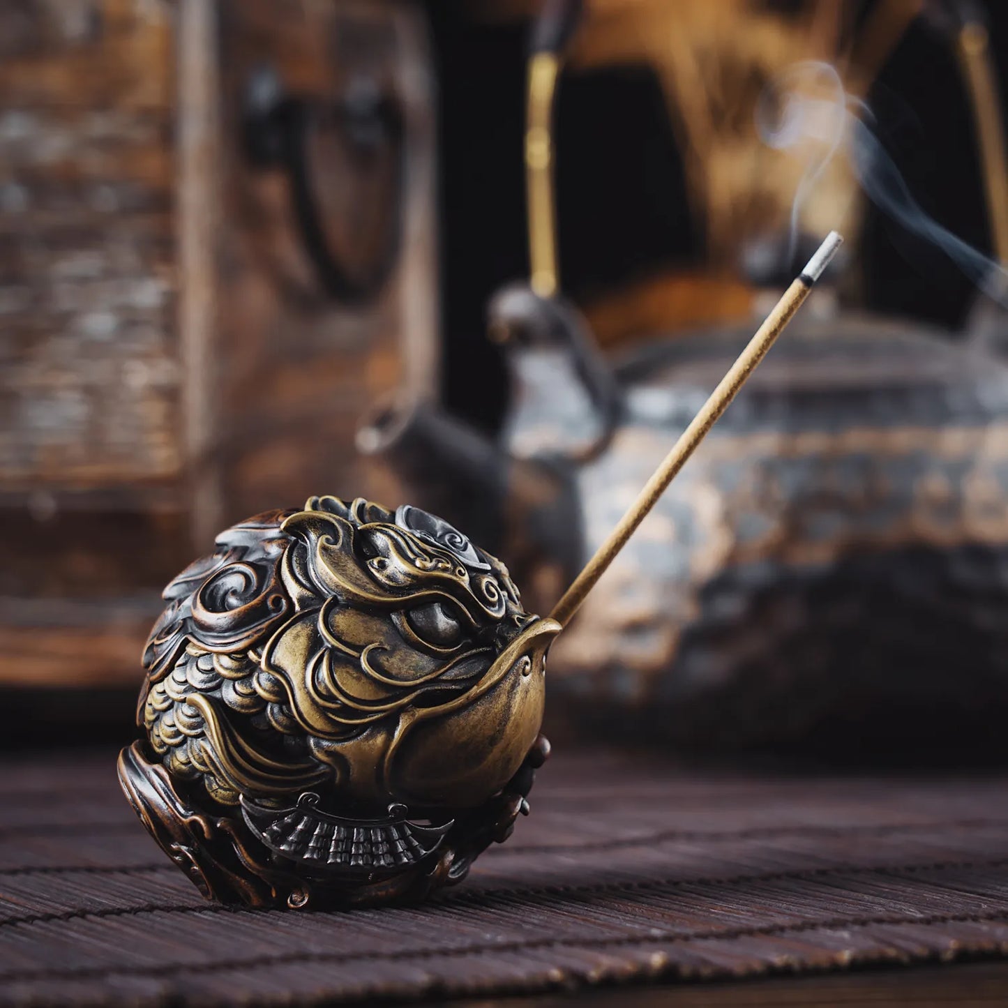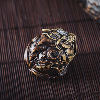 The Koi Carp Statue showcases determination with its captivating eyes and resilient mouth. Inspired by the Tang Dynasty, it embodies the essence of auspiciousness and good luck. Its mouth opening doubles as an incense holder. Handcrafted with intricate detailing, this statue exudes durability and longevity.