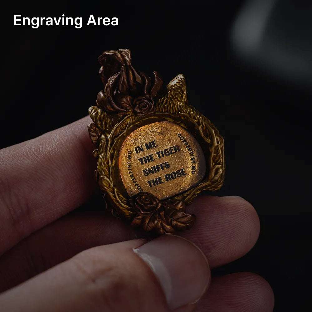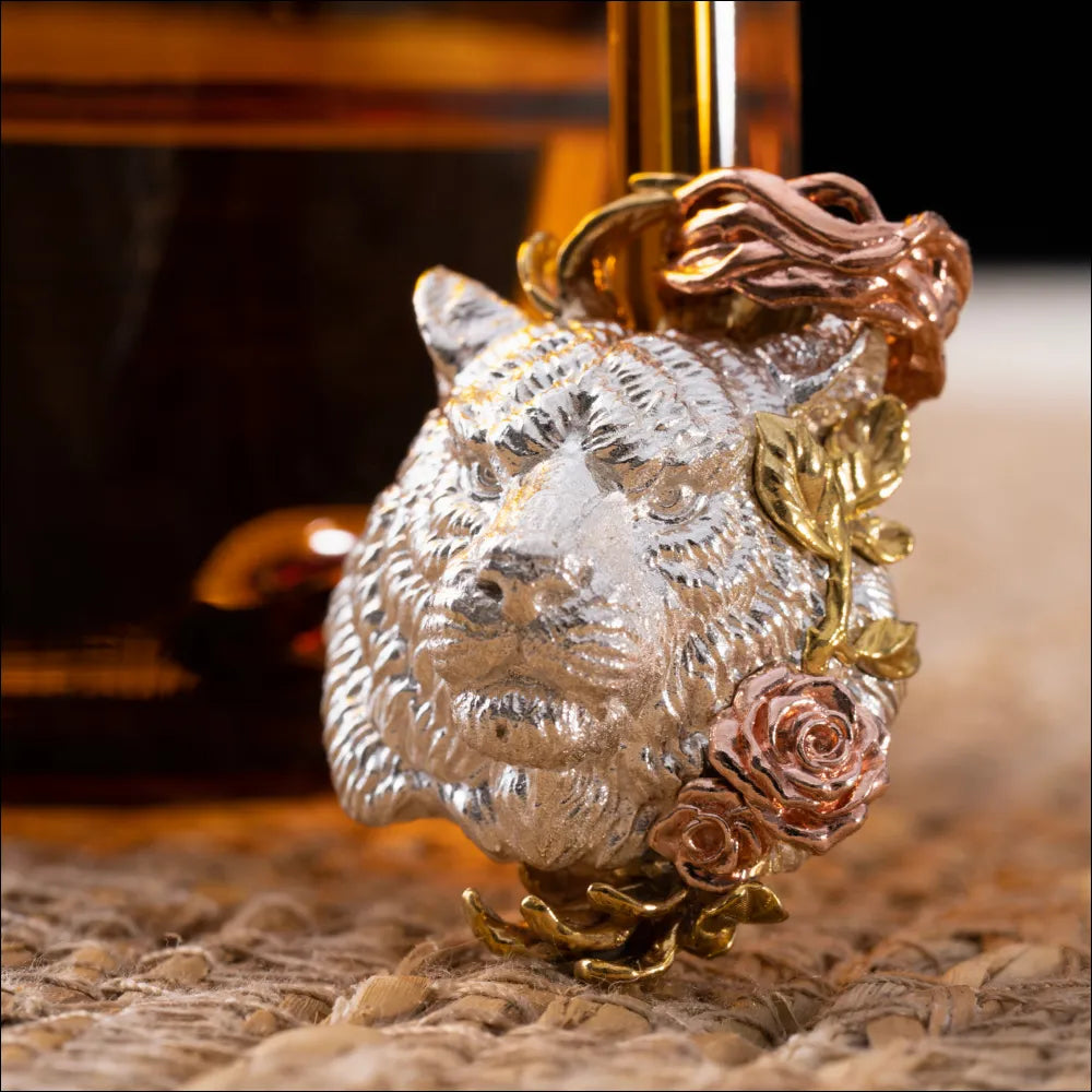 The Tiger Pendant draws inspiration from the poem of British poet Siegfried Sassoon, "In me, the tiger sniffs the rose." The product implies that even the busiest and most ambitious individuals can be conquered by gentleness and beauty, allowing them to peacefully enjoy the good things in life.