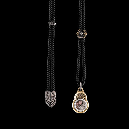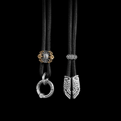 The Double Fish Rope Necklace draws from ancient Eastern symbolism, offering more than just adornment. Its intricate patterns, like the Cloud pattern roof tile and the Ruyi copper coin motif, are steeped in meaning. The Cloud pattern, with bats symbolizing blessings, evokes the enduring prosperity of the Han Dynasty. Meanwhile, the Ruyi copper coin, denoting auspiciousness and nobility, adds a touch of elegance to its craftsmanship.