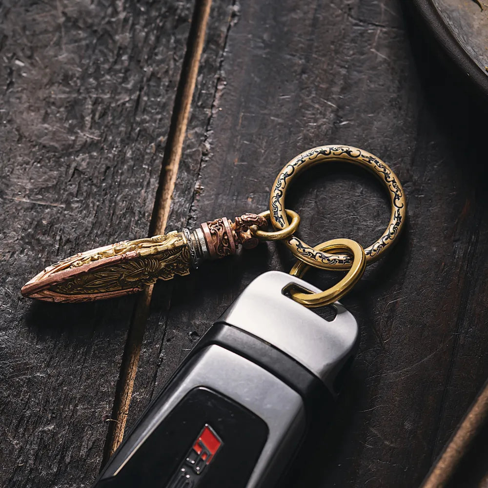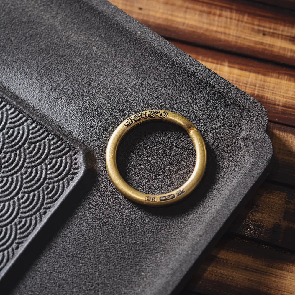 Craftsmanship is at the heart of the Dragon-patterned Keyring, with each piece meticulously created to highlight its features. The back of the keyring is elegantly simple, with dragon and chi lines providing a subtle contrast to the ornate front, which is accentuated by the brand logo. Enamel techniques with black fill bring out the ancient aesthetics, while hand-chamfered edges ensure smoothness and comfort. The specially crafted keyring body is designed for resilience, capable of withstanding significant stress without deforming, making it a durable and reliable accessory.