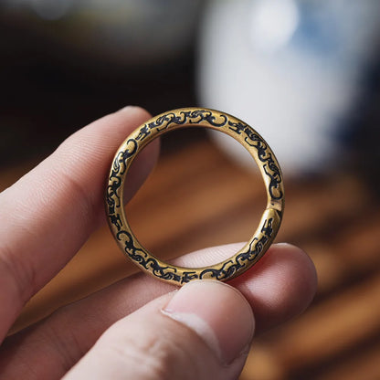The Dragon-patterned Keyring is more than just a functional accessory; it's a bridge to ancient times, embodying the rich symbolism and inspiration of the Western Han period. Drawing from the jade rings adorned with dragon and chi motifs, this keyring captures the essence of these mythical creatures, offering a piece of history that speaks of power, protection, and prosperity. The flattened design maintains the intricate patterns, turning everyday use into a poetic connection with the past.
