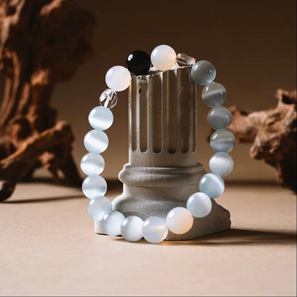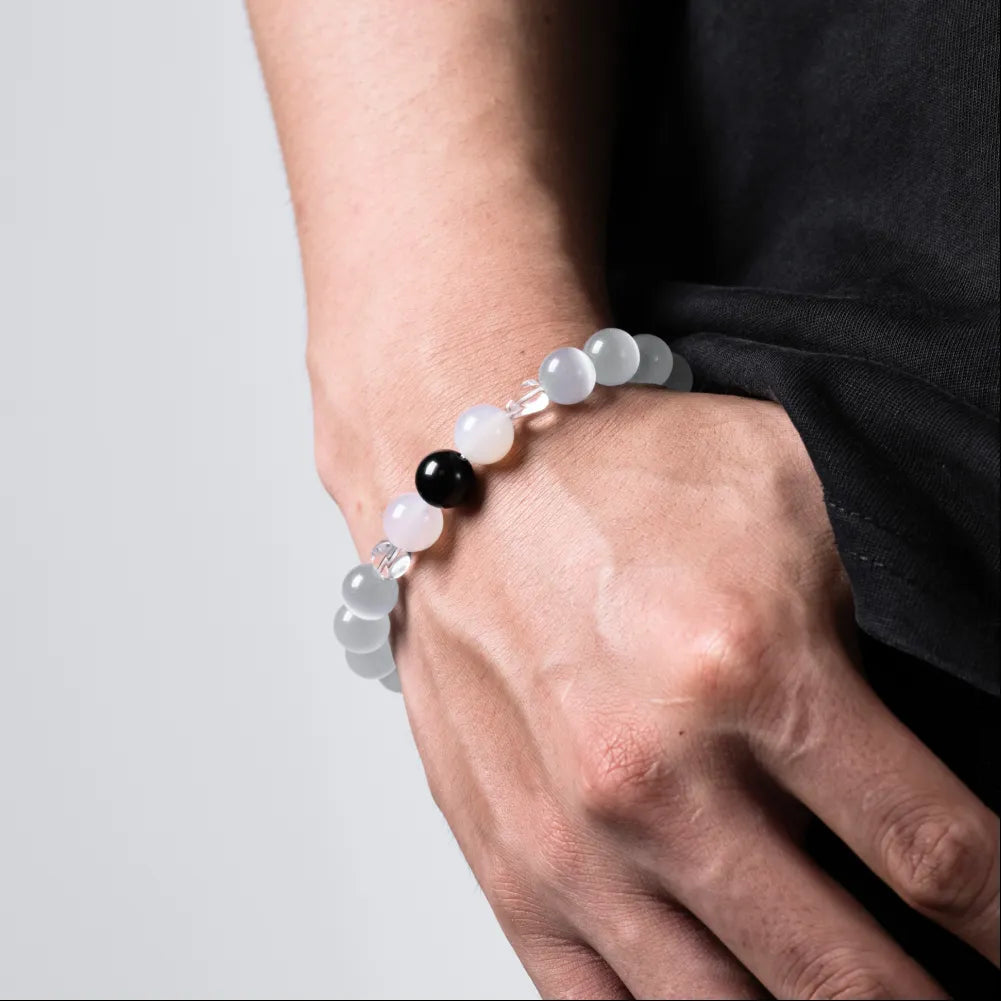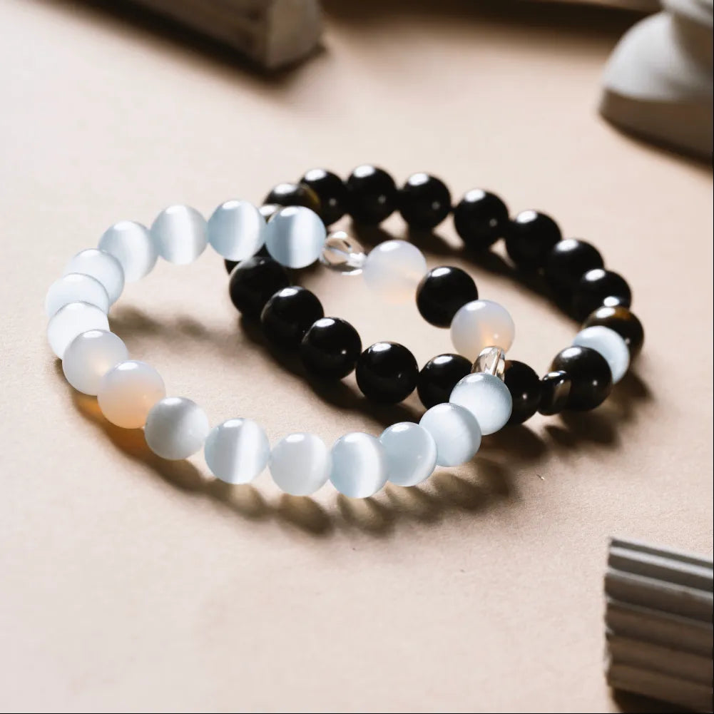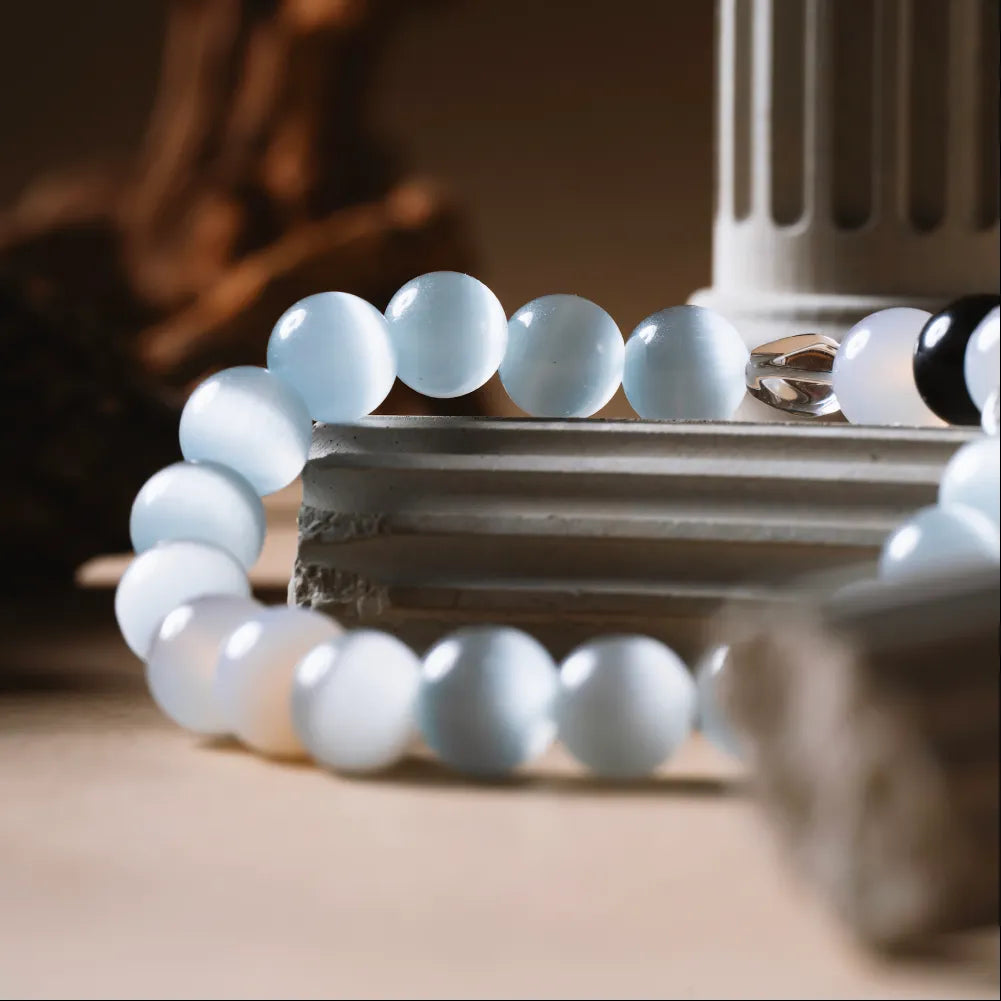 Embrace calm confidence and spiritual protection with our Frozen Clarity Bracelet - a handcrafted energy bracelet made from 10mm White Tiger's Eye, White Agate, Obsidian, and shimmering Ice Cube Spacer Beads. Each bead is carefully selected to enhance purity, balance, and emotional clarity.