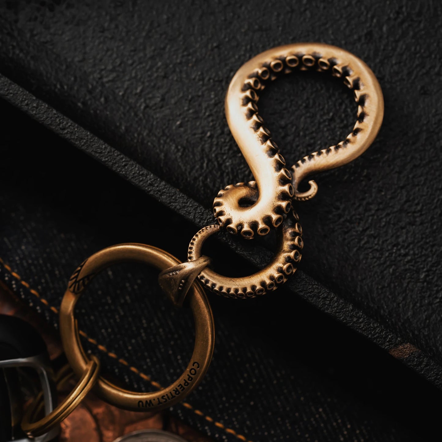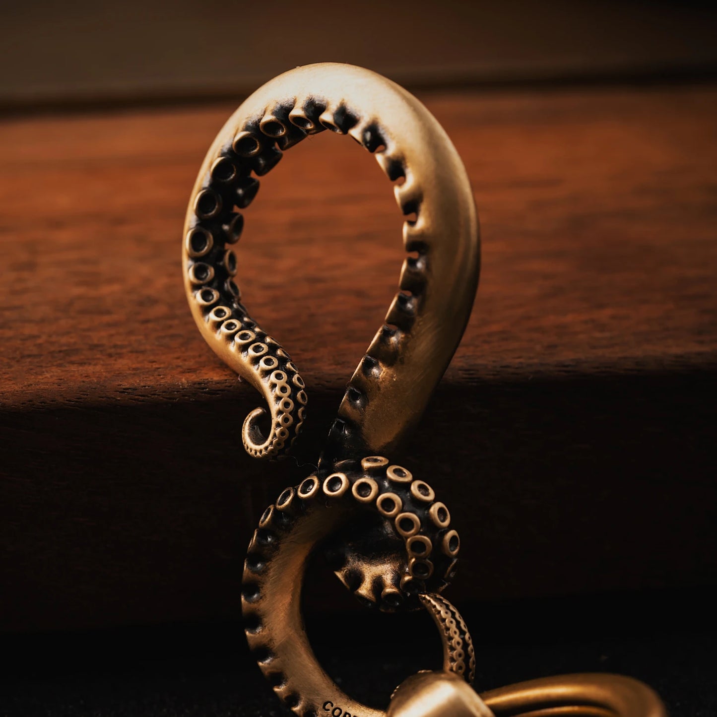 Crafted from high-quality brass, this Octopus Tentacle Keychain is a work of art. Each piece is handmade, hand-polished, and hand-oxidized, giving it a unique and distinct character. The brass version adds a touch of elegance and luxury to your everyday carry items.
