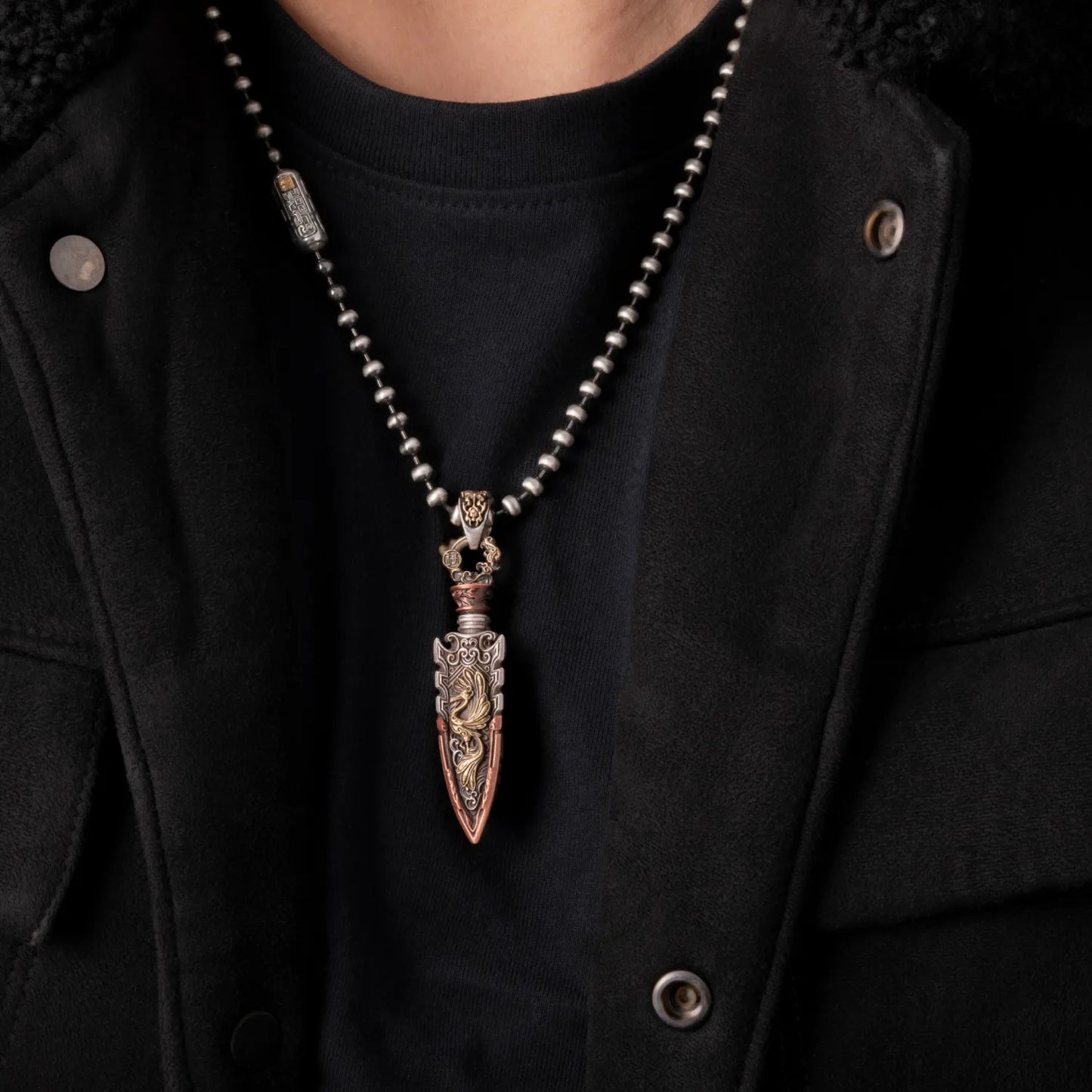Inspired by ancient weaponry, the Arrowhead Capsule Pendant embodies the essence of determination and prowess, reminiscent of a time when precision and skill were paramount. Its triangular form pays homage to the arrowheads of old, while intricate patterns echo the majestic adornments of Han Dynasty steeds, evoking a sense of heritage and strength.