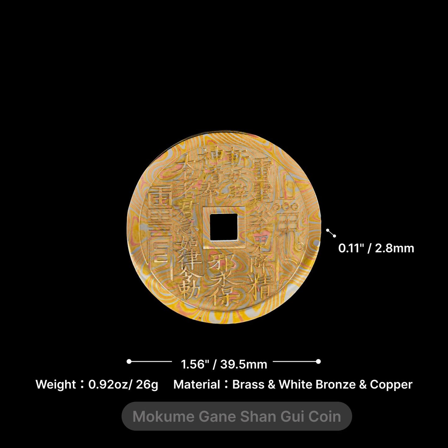 Introducing our exquisite Mokume Gane Shan Gui Coin, a masterpiece handcrafted with unparalleled attention to detail. Each coin is a unique testament to the artistry of traditional Chinese culture combined with modern design.