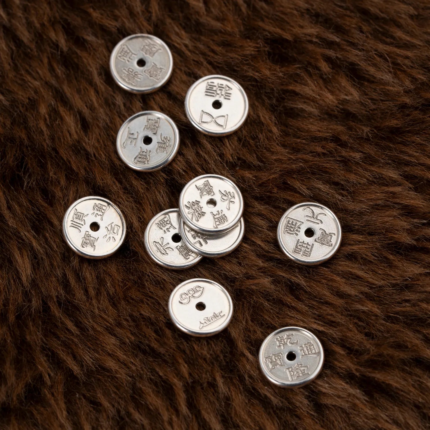 With meticulous craftsmanship, this spacer is forged from S925 silver using precision machining techniques, ensuring crisp, detailed engravings. The design merges the Five Emperors Coins with the aesthetic of wheel spacers, a revered element in the collectible bead community. Available in 6mm, 7mm, and 8mm sizes, it fits corresponding bead strands while accommodating only 1.2mm playwear cords (not compatible with 1.5mm cords). Every ridge, symbol, and inscription is a testament to the artistry behind this piece—where traditional blessings meet contemporary styling.