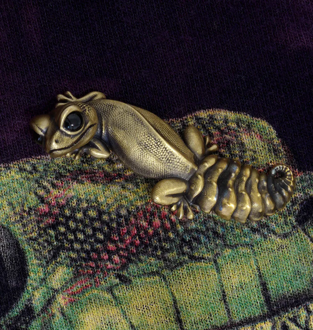 The creative journey behind this brooch was a fascinating challenge, pushing the boundaries of texture replication on the Gecko's back. We focused on achieving a balance between aesthetics and comfort, resulting in a lightweight piece that complements any attire.