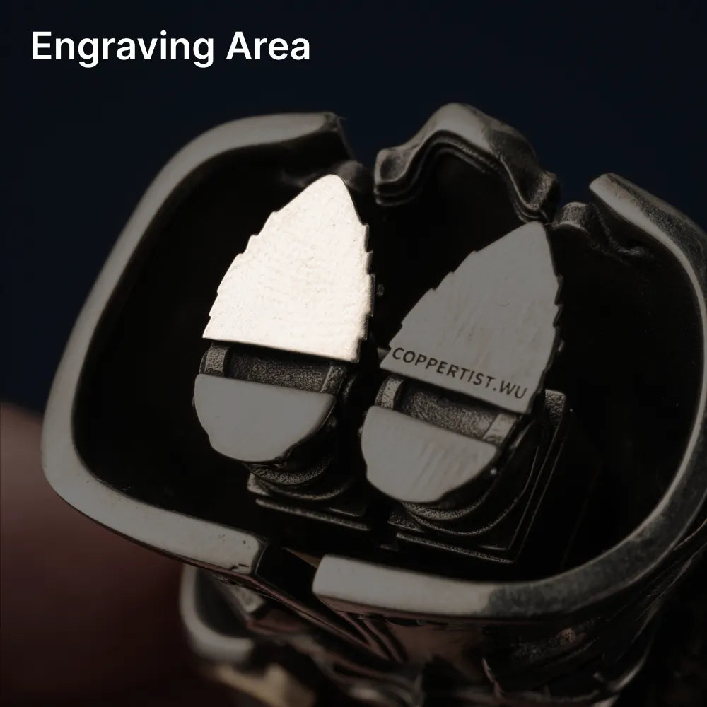 Built like a war hymn in steel. Each Crimson Templar is handcrafted from 19 meticulously cast and welded metal pieces, divided into 6 core magnetic parts for seamless reassembly, head, arms or alternate cape, chestplate, torso, and lower body. The V-shaped crested helmet borrows from European plumage traditions, while the cloak's asymmetric flow gives him a commanding edge. The layered chest and shoulder scrollwork are inspired by medieval cathedral windows and royal insignias, refined to convey sacred protection and enduring glory. Crafted in a palette of white copper, bronze, and red copper, the piece develops a natural patina over time, no plating, no paint, just time etching its own battle marks. Every texture, even the folds on the cape, is hand-aged and chiseled in detail, making no two warriors alike.