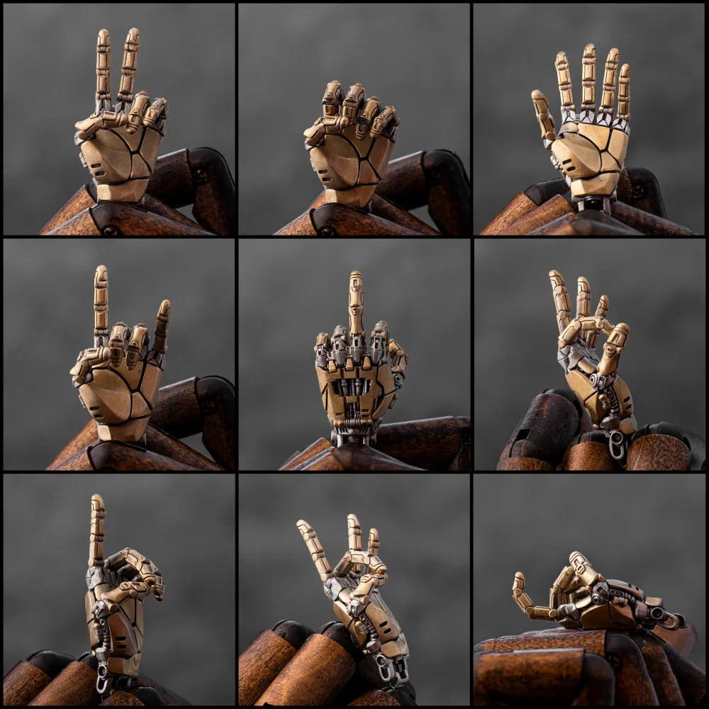 Each piece is built from 18 precision metal parts and fully hand-assembled with an engineer's precision and an artist's soul. The movable joints allow it to mimic human gestures like “OK” or “peace,” while the openable back exposes the skeletal structure beneath—a visual thrill for those who worship form and function. Every joint, curve, and click has been tested to deliver a mini-mech marvel that blends techy charm with intricate handcraft.