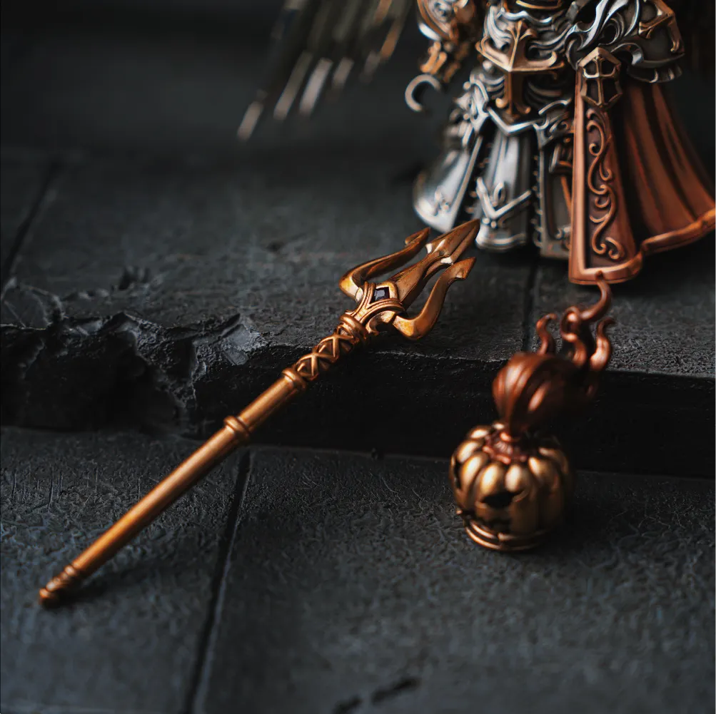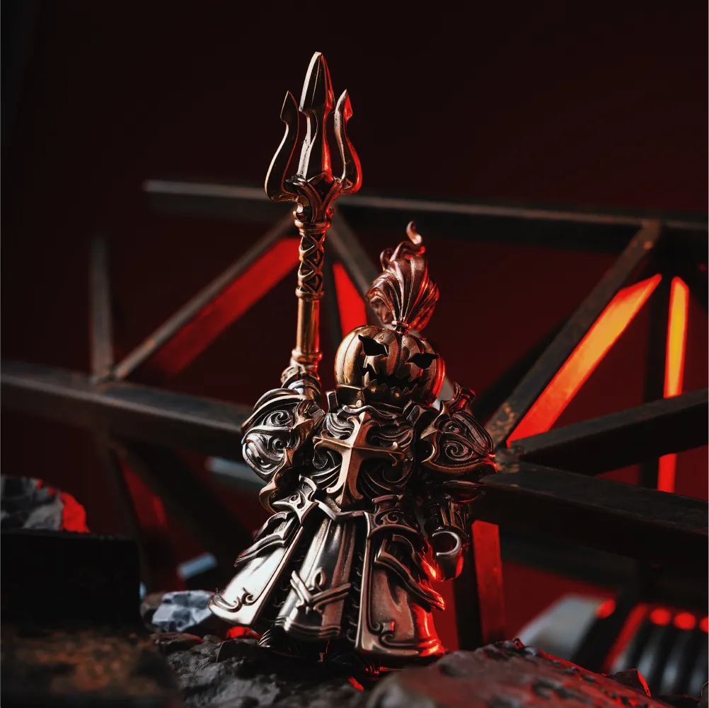 Inspired by the legendary Jack-O'-Lantern, this magnetic Pumpkin Head fuses haunting Halloween symbolism with sleek modern metalwork. Its carved sinister grin and flame crown embody both celebration and defiance, transforming a festive icon into a powerful collectible.