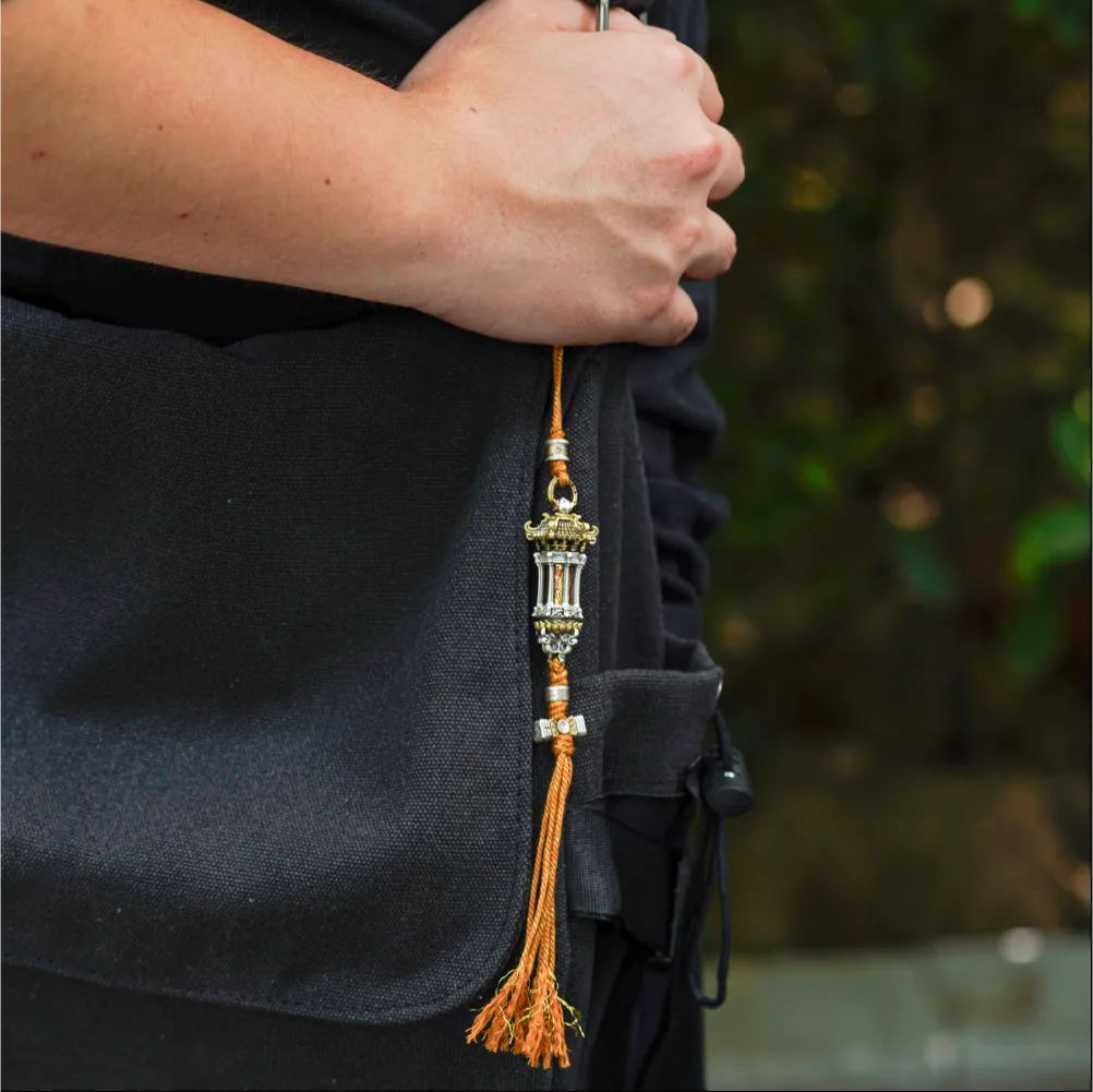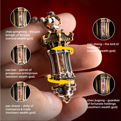 A temple that turns is no ordinary pendant—it's a cosmic compass, a rotating sanctum born from the Taoist truth that "movement and stillness give rise to each other." Drawing from the idea of “one temple housing five directions," this miniature sanctuary encapsulates the silent brilliance of the Dao De Jing: “Great sound is seldom heard." Instead of deities, five directional wealth talismans reside within, representing the five gods of fortune, each guarding a path of prosperity.