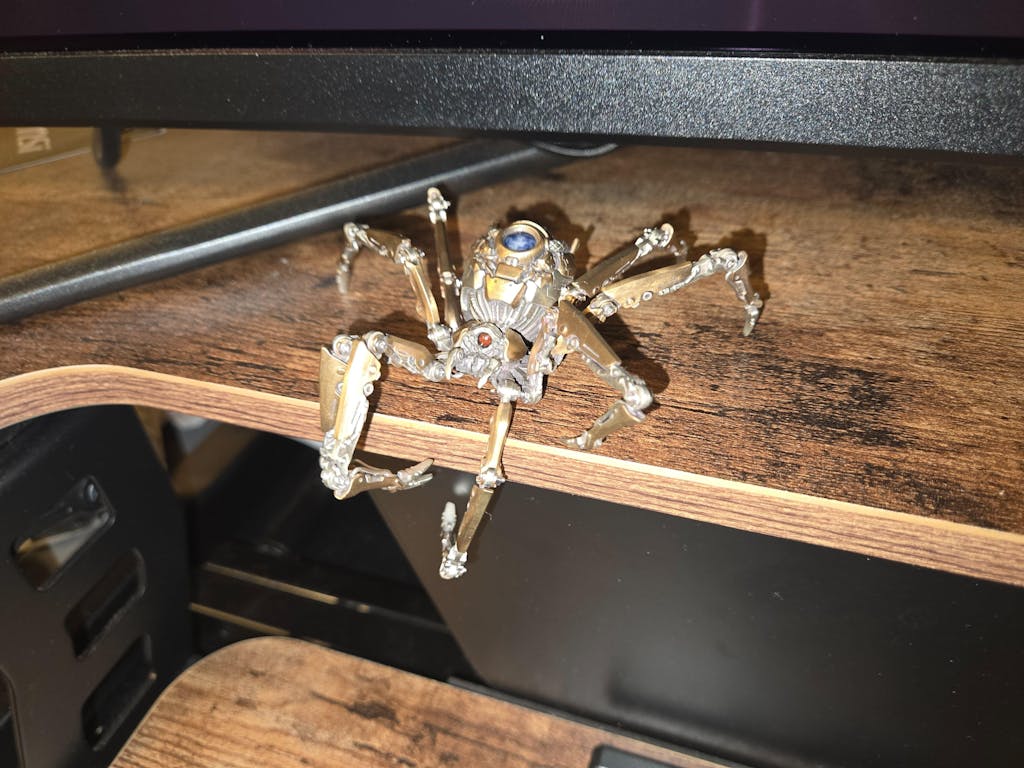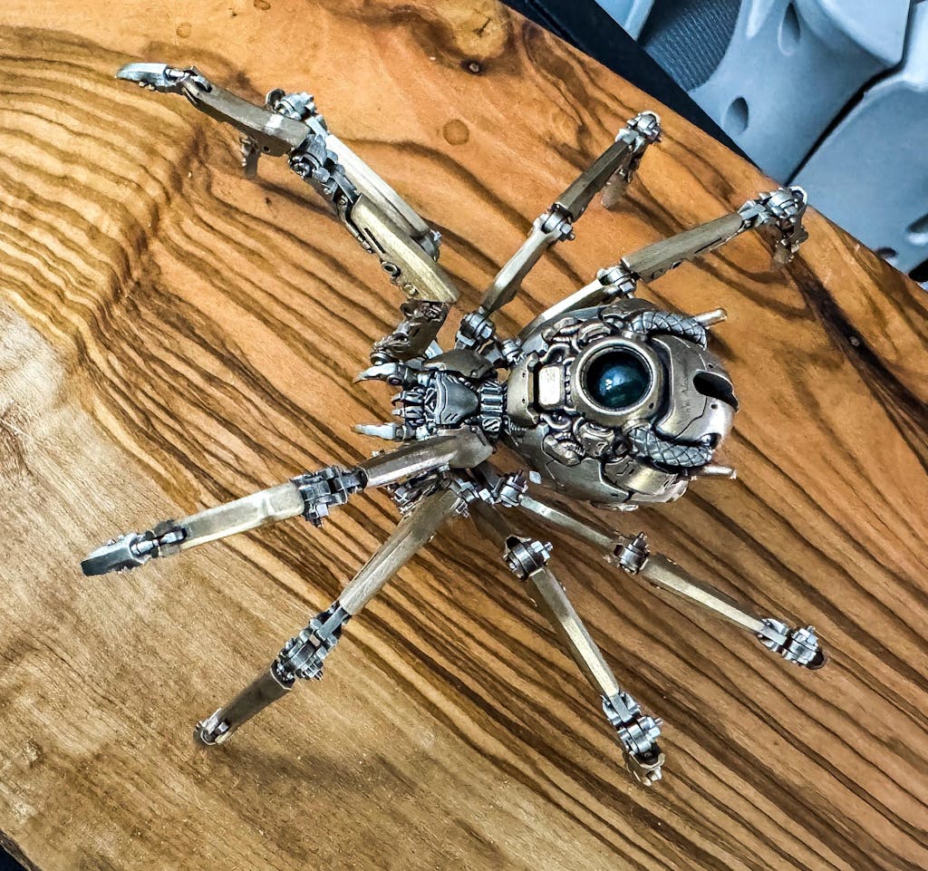With 57 individual parts and fully posable legs, the Mechanical Widow can shift from stealth to attack stances, making it as much a kinetic art piece as a desk display. Crafted in bronze and white copper, with customizable gemstone and metal options, it's a collectible that feels alive in your hands.