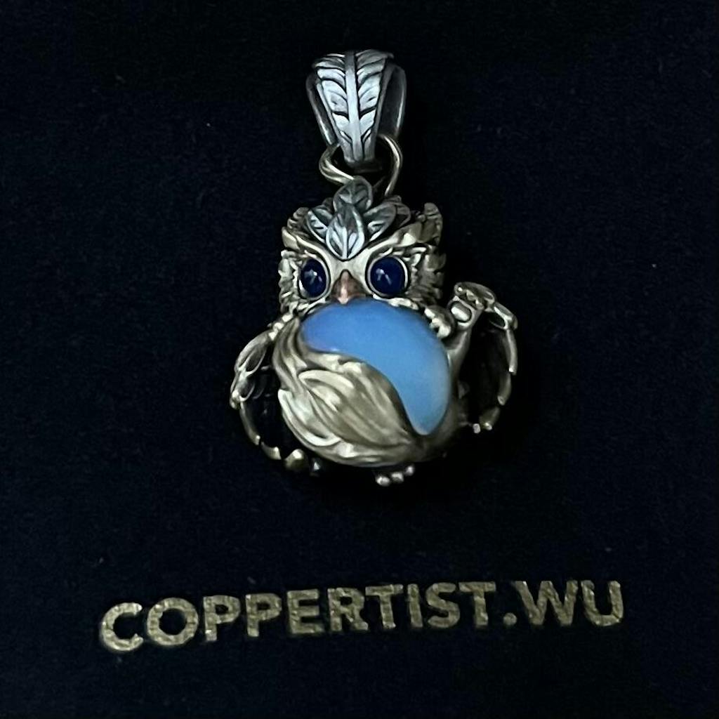 Built from four interlocking pieces—white brass, yellow brass, and red copper—this pendant is a miniature marvel of layered metalwork. The feathered clasp and leaf-shaped loop echo the wings of protection, while the core body is carved with dynamic, lifelike plumage. Nestled within its wings lies a customizable 10mm crystal "heart", pulsating with energy and having a palette of 20 stones including amethyst, turquoise, and garnet. The piercing 3mm gemstone eyes—select from amethyst, blue zircon, red ruby, black onyx, and more—give each pendant a one-of-a-kind personality. It's small, but bursting with energy and detail.