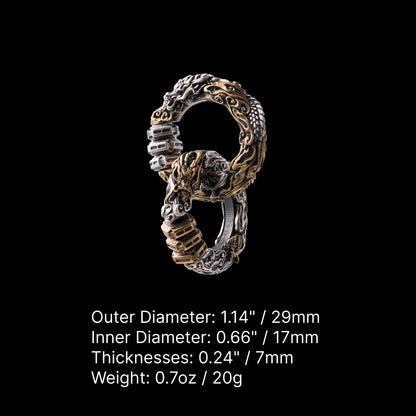 The Celestial Dragon Yin Yang Ring embodies ancient Chinese wisdom through modern craftsmanship. This rotating talisman features two interlocking rings representing cosmic balance, with intricate dragon motifs symbolizing power and prosperity. Each handcrafted piece contains 13 green chalcedony stones (6+7) paying homage to the Southern Dipper and Northern Star constellations.