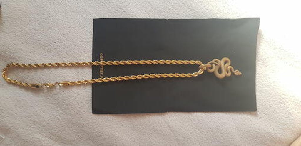 Crafted from brass, the Snake Pendant is a unique and eye-catching accessory. Hand-set with black zircon stones, the lifelike snake eyes add an extra level of detail to the already intricate design. With over 1,000 visible snake scales, this pendant is sure to capture the attention of anyone who sees it.