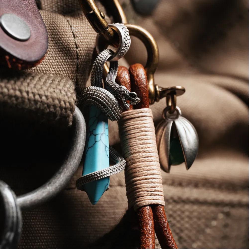 Every curve is realized with meticulous craftsmanship. Standing at 50mm in height, the pendant's three-dimensional sculpting ensures lifelike depth on both front and back. The snake's gaze is brought to life through a 1mm hand-set black gemstone, gleaming with quiet intensity. Subtle branding and a customizable engraving area on the serpent's body add layers of personal expression, making each piece truly one of a kind. Available in brass or white copper, it pairs with your choice of twenty different crystals—each stone offering its own color and energy. Whether worn as a pendant, clipped as a keychain, or strung on beads or paracord, its adaptability elevates both casual and statement styling.