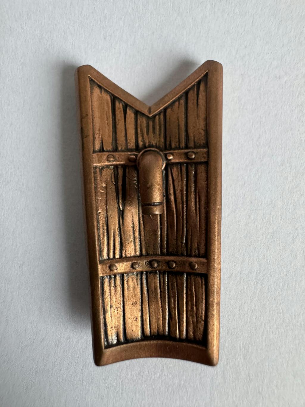 This Crimson Templar Vowkeeper Shield Replica is a stunning templar shield collectible, meticulously crafted from four layered metallic panels (Brass and white White Bronze), featuring a central red gemstone and cross-shaped ornamentation. This crusader knight shield evokes medieval aesthetics while offering modern assembly precision.