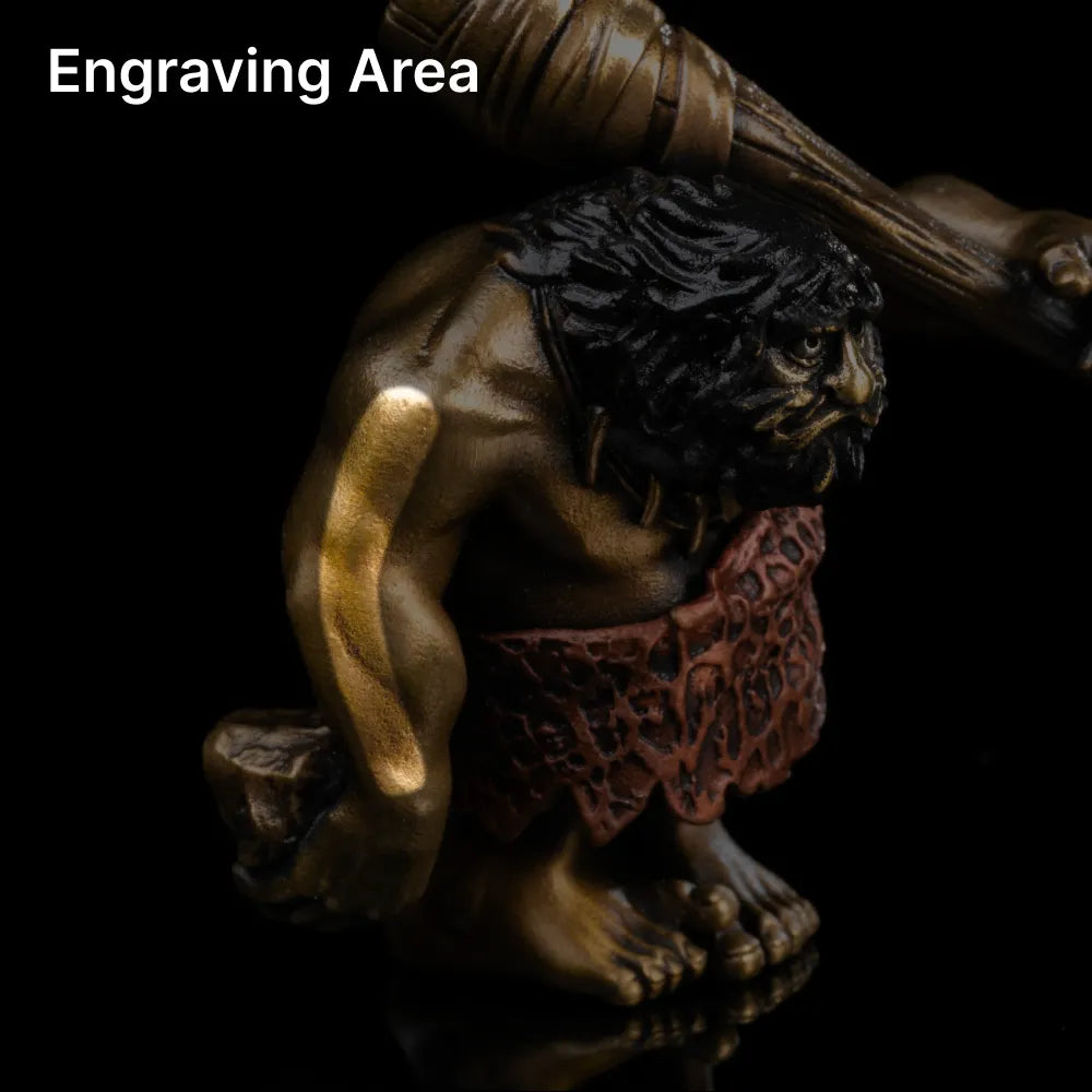 Crafted from seven intricately cast metal parts, the Wildling boasts brawny brass arms, a hand-sculpted copper animal-hide skirt (yes, with worn edges and knotted textures), and silver-inlaid facial features that capture everything from his grumpy brow to his clenched teeth. The fire-stick he clutches doubles as a cleverly hidden incense slot, and when lit, it transforms into a tribal ritual scene, part drama, part decor. His hair? An explosion of hand-shaped strands. His pose? Guarded, yet weirdly shy, just look at how his toes awkwardly curl together, like he didn't expect you to look so close.