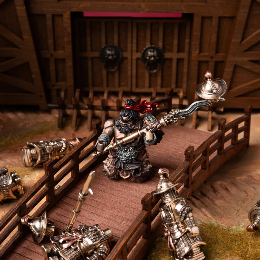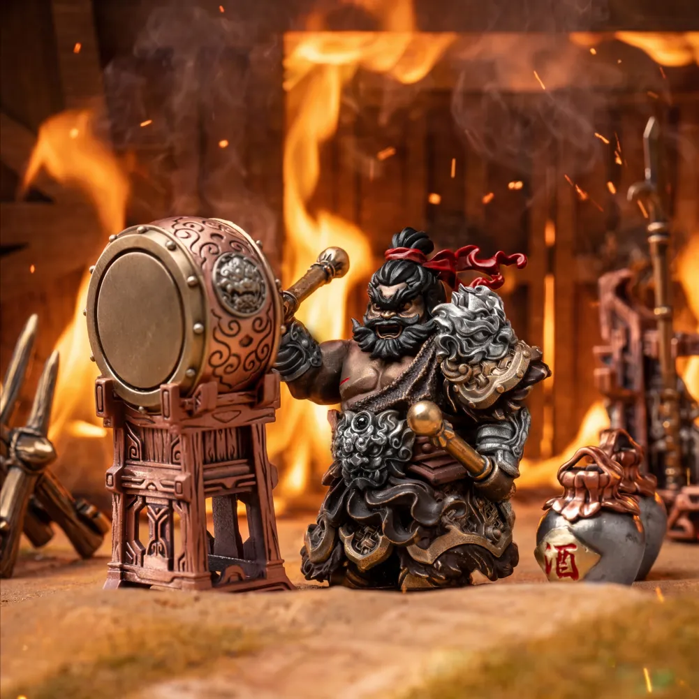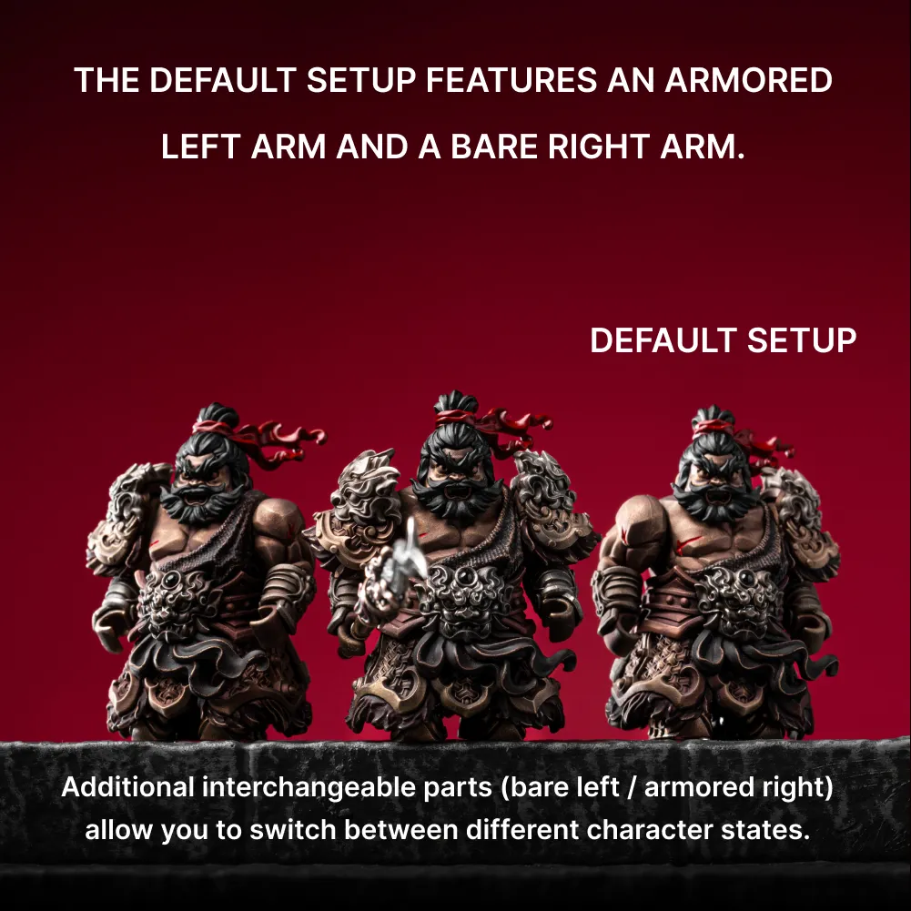 Inspired by Zhang Fei’s legendary presence in Romance of the Three Kingdoms, the Serpent Pike Eight-Foot Fang captures his raw bravery and battlefield dominance. With a leopard-headed glare, fierce ring eyes, and tiger-like whiskers, this compact figure embodies the intimidating “aura of the front line” standing firm, roaring loud, and suppressing opponents before a single blow. Asymmetric heavy armor, flying ribbons, and battle scars convey unstoppable momentum. The included Eight-Foot Serpent Spear and swappable hand pieces let you customize his stance, turning one figure into multiple battlefield roles.