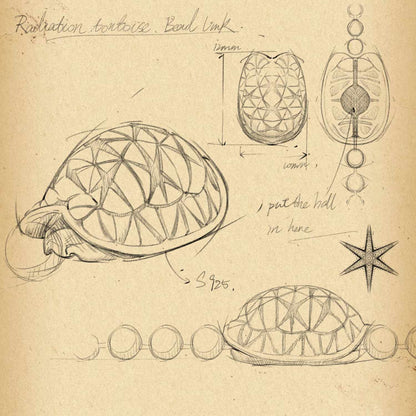 Crafting the radiating patterns posed a challenge in replicating intricate details on a small clasp. Our design journey involved experimenting with complex raised patterns, but it wasn't capturing the essence of the tortoise shell's beauty. Thus, we opted for a starburst effect and applied a concave treatment to emphasize the radiating pattern. The layered effect of oxidized silver became our artistic ally, achieving the desired result. This necklace/bracelet is not merely an accessory but a testament to our commitment to environmental conservation and the celebration of the Indian Star Tortoise's natural beauty.