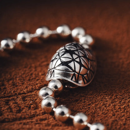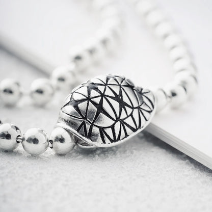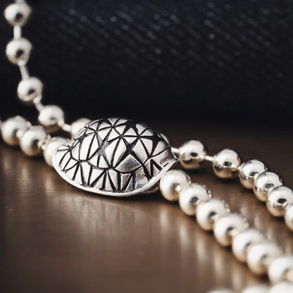 This piece ingeniously utilizes the layered effect of oxidized silver to showcase the intricate radial patterns synonymous with the star tortoise shell. By integrating the tortoise shell structure with bead chains, we elevate a simple necklace into a detailed masterpiece. Beyond aesthetics, our design serves a higher purpose—encouraging appreciation for endangered wildlife. The Indian Star Tortoise, classified as "Vulnerable" in the IUCN Red List, deserves our attention and protection. This jewelry piece is a meaningful effort to raise awareness about wildlife conservation.