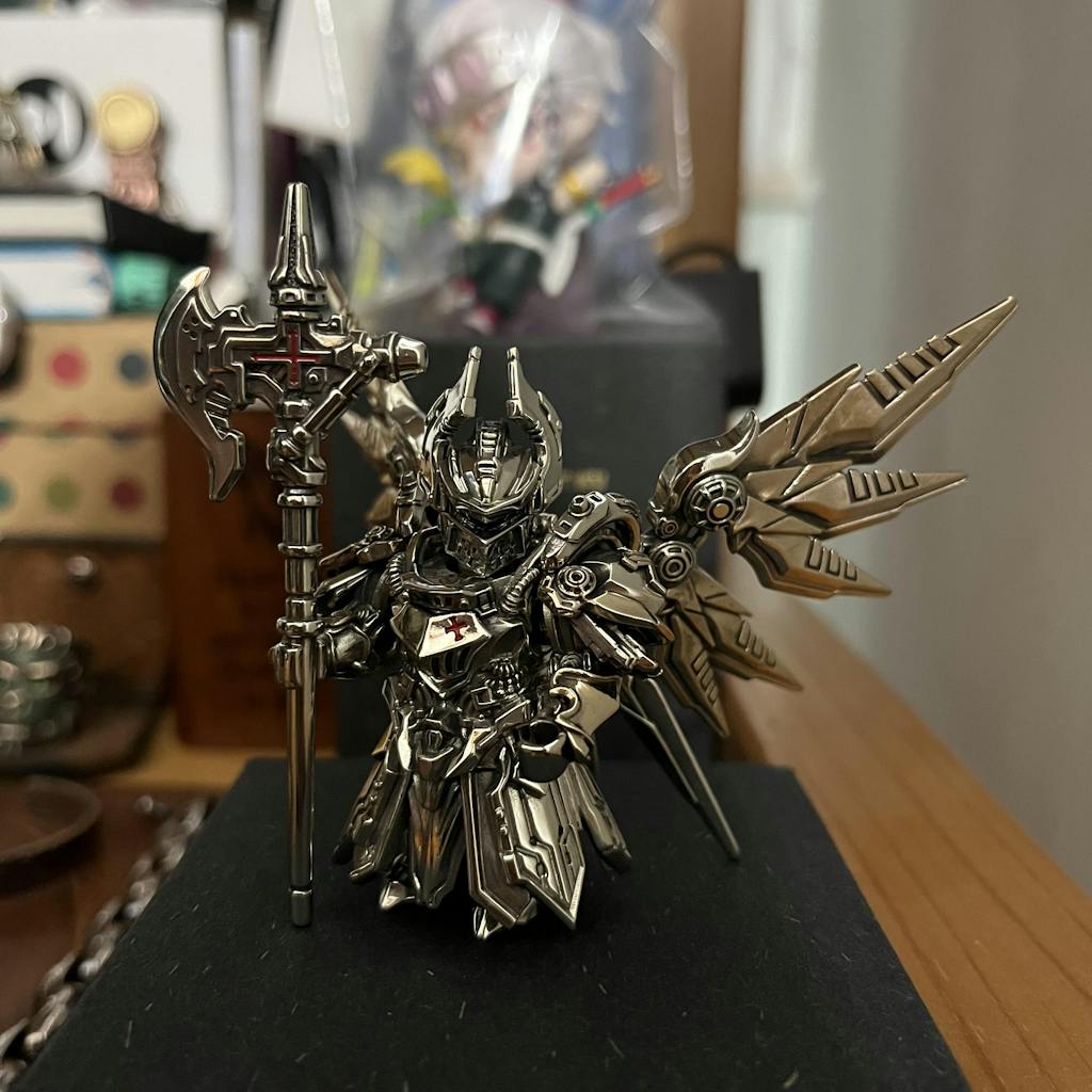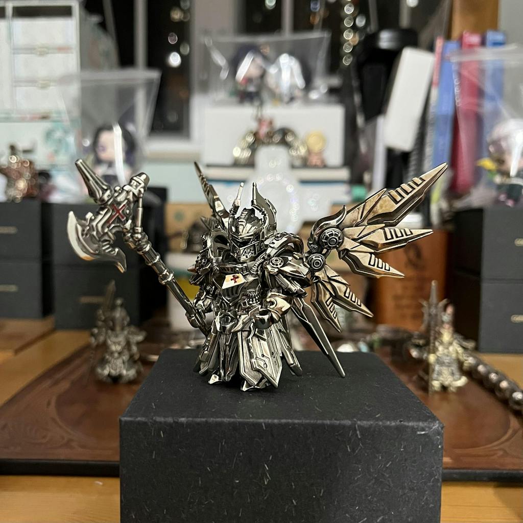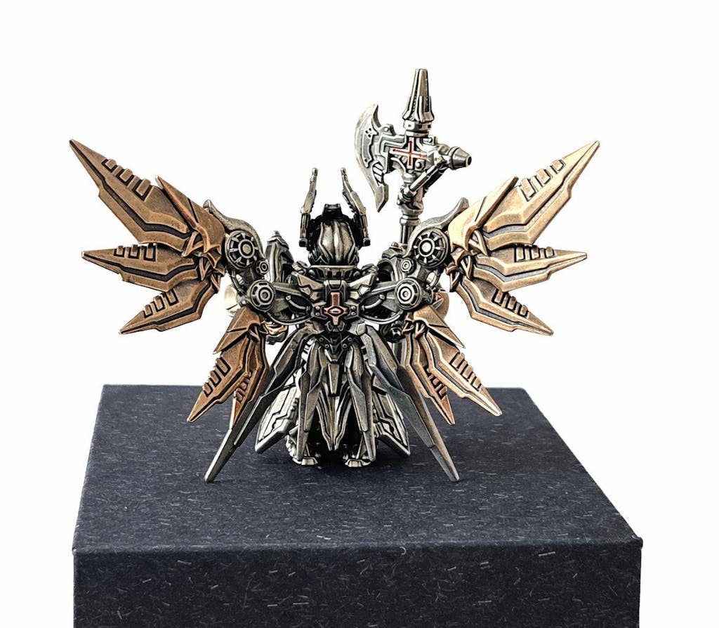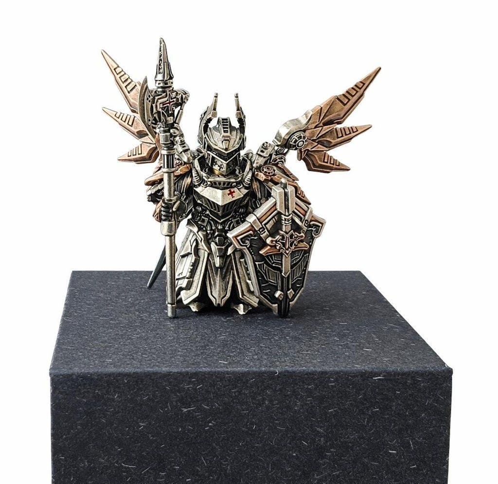 Mech Justicar blends medieval Templar influence with futuristic mechanical design, turning sacred armor themes into a refined metal miniature. The body features 22 hand-finished pieces, 16 internal magnets, and crisp mechanical detailing that gives the piece its modern silhouette. Interchangeable wings and weapons let you adjust the look easily, while the polished cupronickel structure ensures long-term durability and a clean metallic presence. Designed for collectors, fantasy lovers, and anyone drawn to knightly symbolism, it’s a compact statement piece with both story and precision.