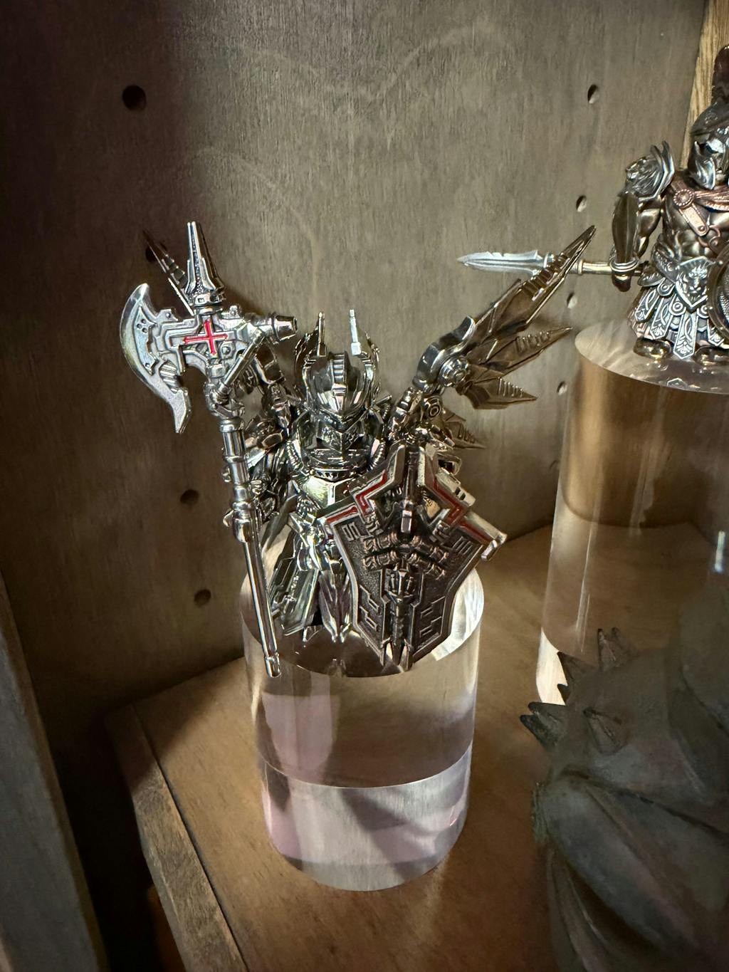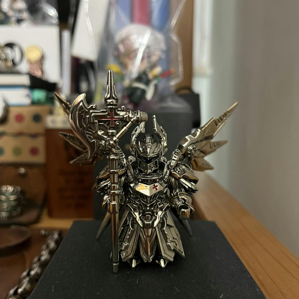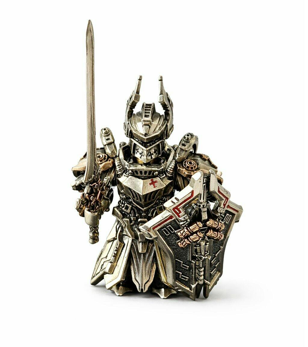 Mech Justicar blends medieval Templar influence with futuristic mechanical design, turning sacred armor themes into a refined metal miniature. The body features 22 hand-finished pieces, 16 internal magnets, and crisp mechanical detailing that gives the piece its modern silhouette. Interchangeable wings and weapons let you adjust the look easily, while the polished cupronickel structure ensures long-term durability and a clean metallic presence. Designed for collectors, fantasy lovers, and anyone drawn to knightly symbolism, it’s a compact statement piece with both story and precision.