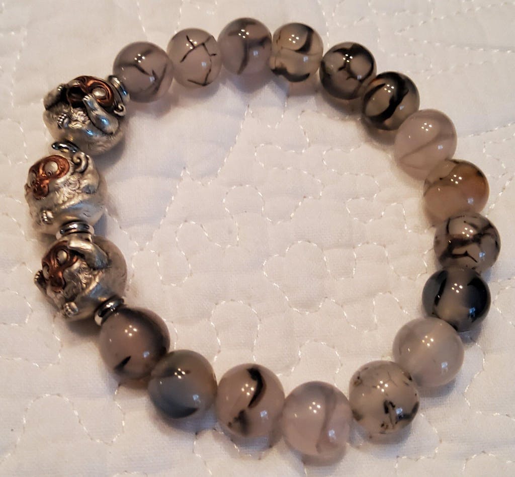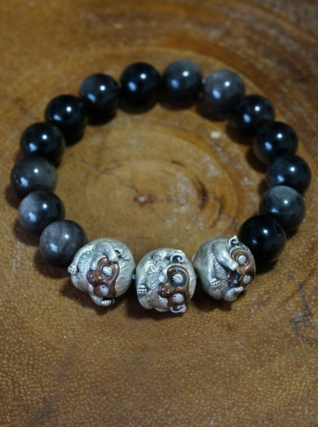 Oxidized Silver Monkey Bead Bracelet