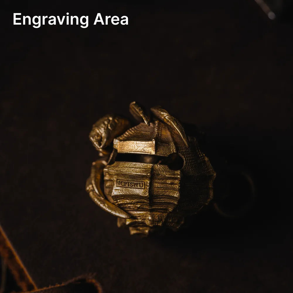 Inspired by hermit crab, we designed this keychain. Hermit crab is strange and beautiful creature lives in muddy seabeds, on land in tree caves, and under rocky ledges. They have hard pincers but soft middles with no outward protection. Because of this, they use their hooked tails to hold and wear shells they find that are of an appropriate size. They live for up to 70 years and can get up to over 12 inches in length.