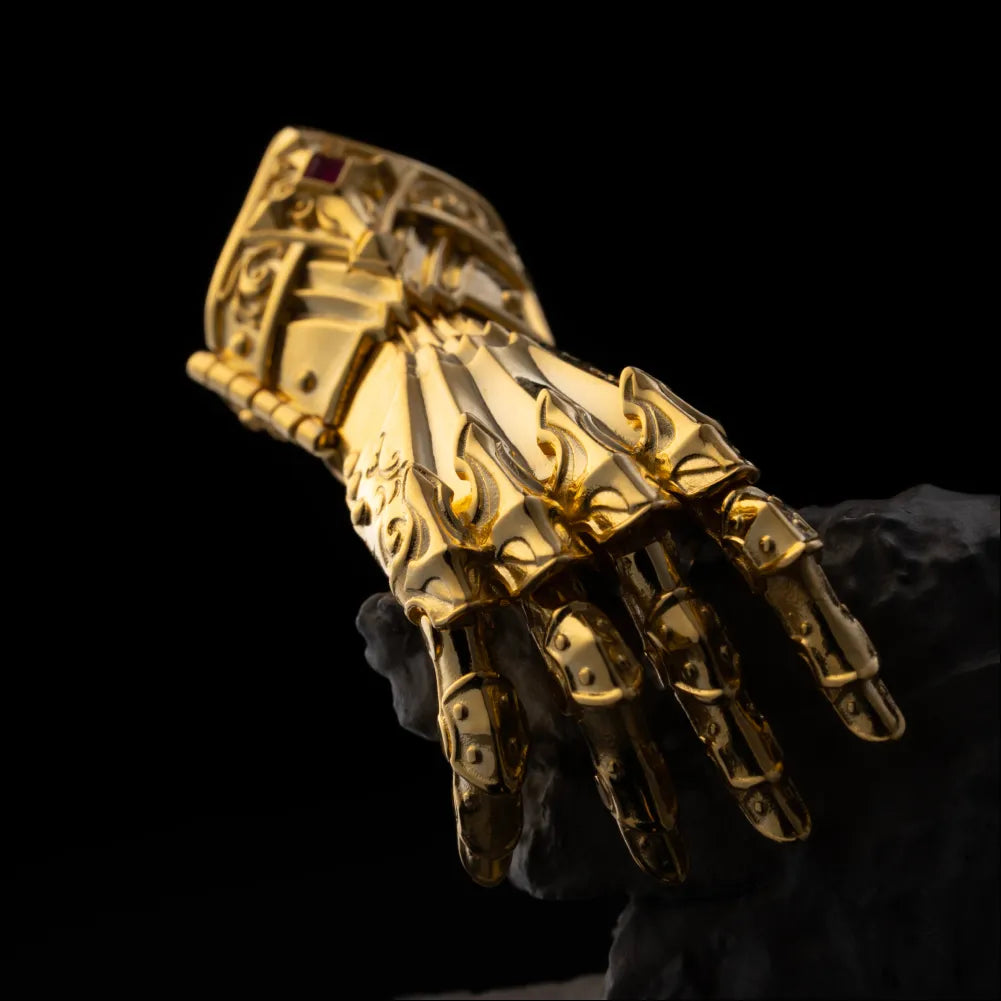 Inspired by the iconic gauntlets of medieval knights, the Armored Mechanical Hand represents the third evolution of our mechanical hand series, more refined in structure, more mature in aesthetics, and richer in symbolic meaning. The design draws from Gothic arches, Baroque scrollwork, and segmented mechanical joints to express protection, honor, and unbending will. The cross-engraved handplate, precise finger segments, and exposed inner frame echo the spirit of a knight’s oath: to stand firm, stay ready, and guard what matters. More than an accessory, it functions as a wearable talisman, a small piece of armor you can carry every day.