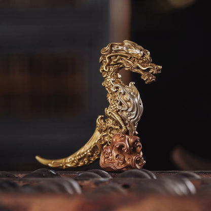 The Dragon Box Opener draws inspiration from Han Dynasty artifacts, embodying the symbolism of success in one's career. Its intricate design presents a manufacturing challenge, while the traditional Oriental patterns on the base add cultural richness. This versatile tool serves as a tea knife, envelope opener, and bottle opener, showcasing its adaptability. Handcrafted with attention to detail, it ensures durability and longevity.