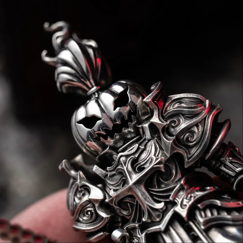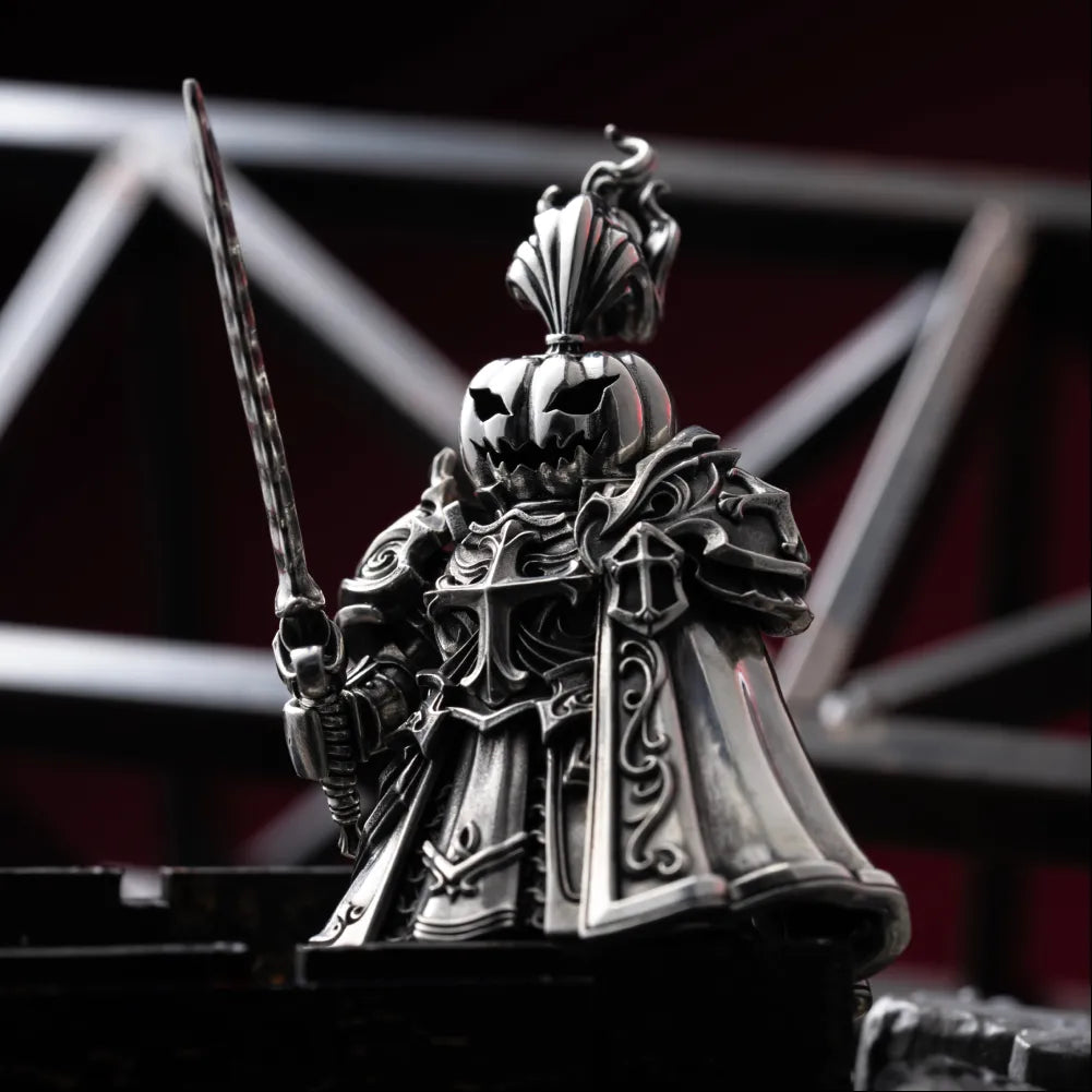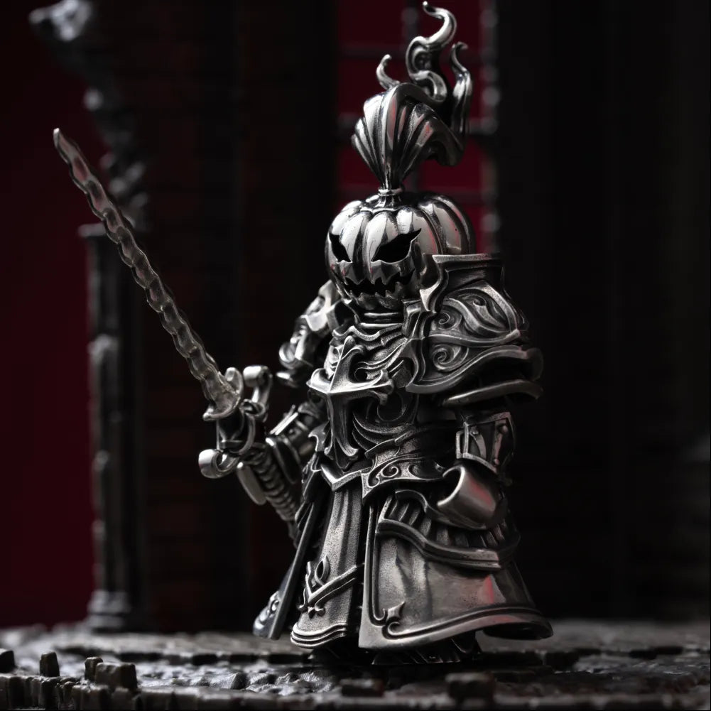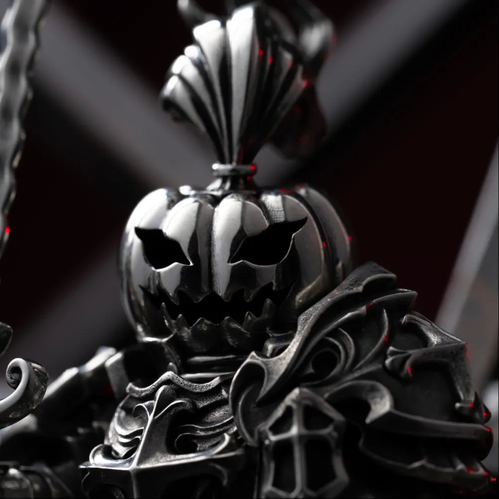 Inspired by the legendary Jack-O'-Lantern, this magnetic Pumpkin Head fuses haunting Halloween symbolism with sleek modern metalwork. Its carved sinister grin and flame crown embody both celebration and defiance, transforming a festive icon into a powerful collectible.