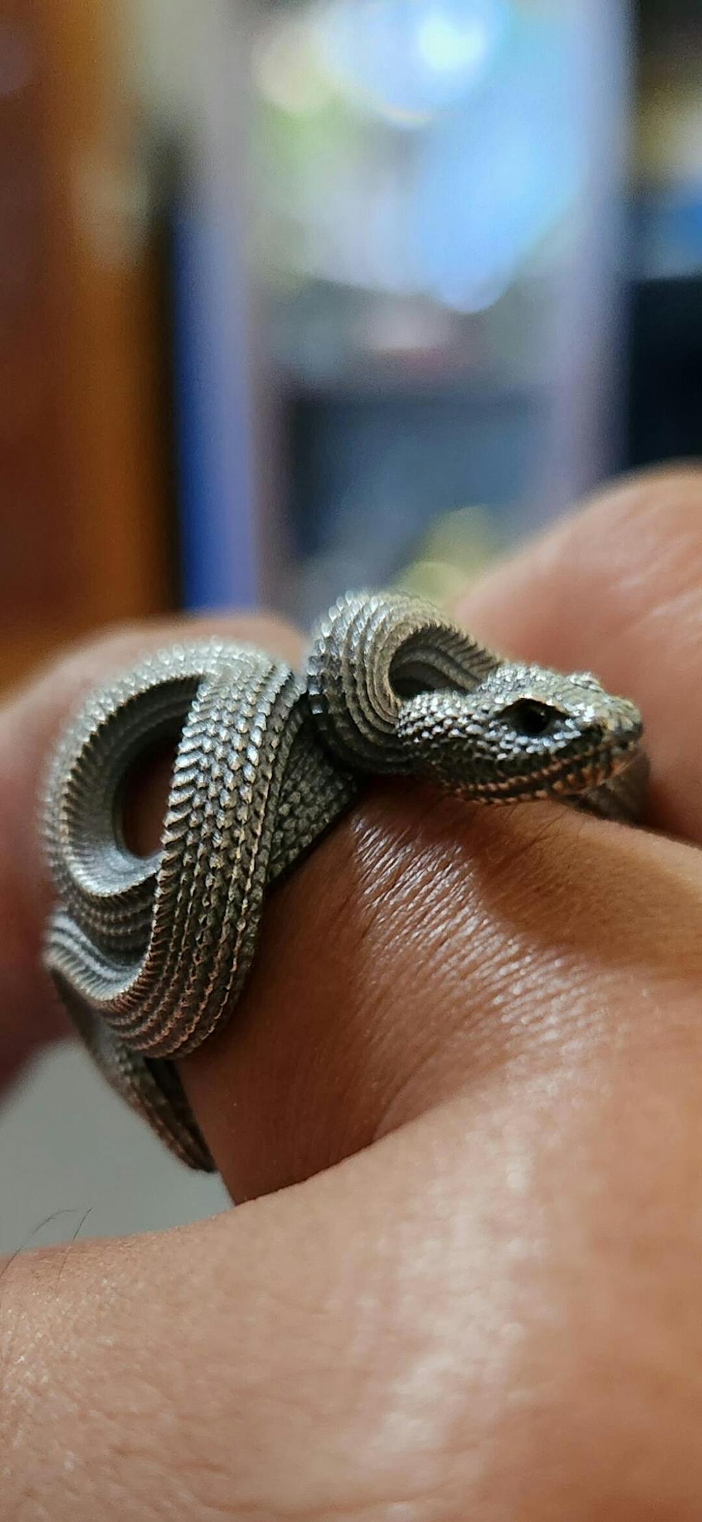 The mesmerizing Snake Ring, a unique and captivating piece of jewelry that embodies the essence of wisdom and knowledge. Inspired by the Mangshan pit viper, an endangered species, this ring depicts the snake, a symbol of transformation and rebirth, in exquisite detail.