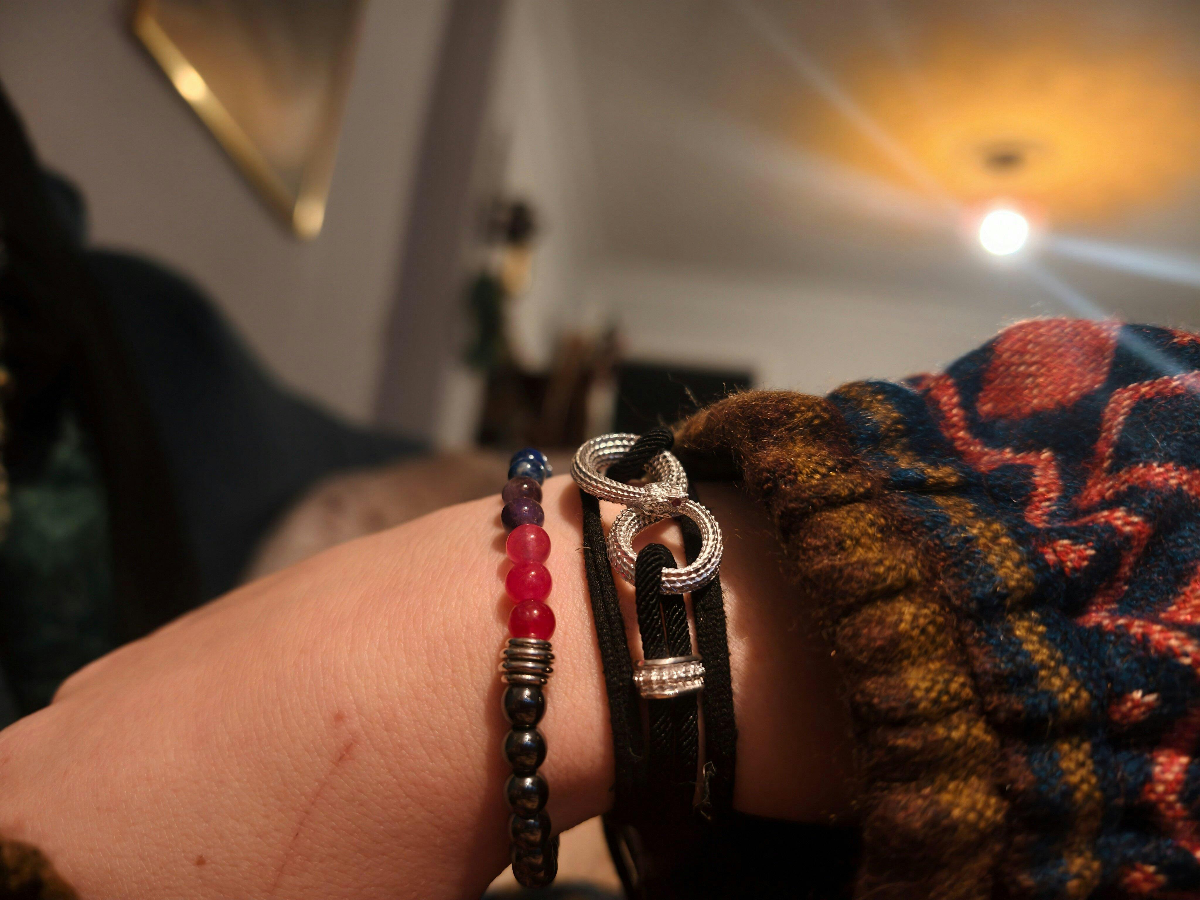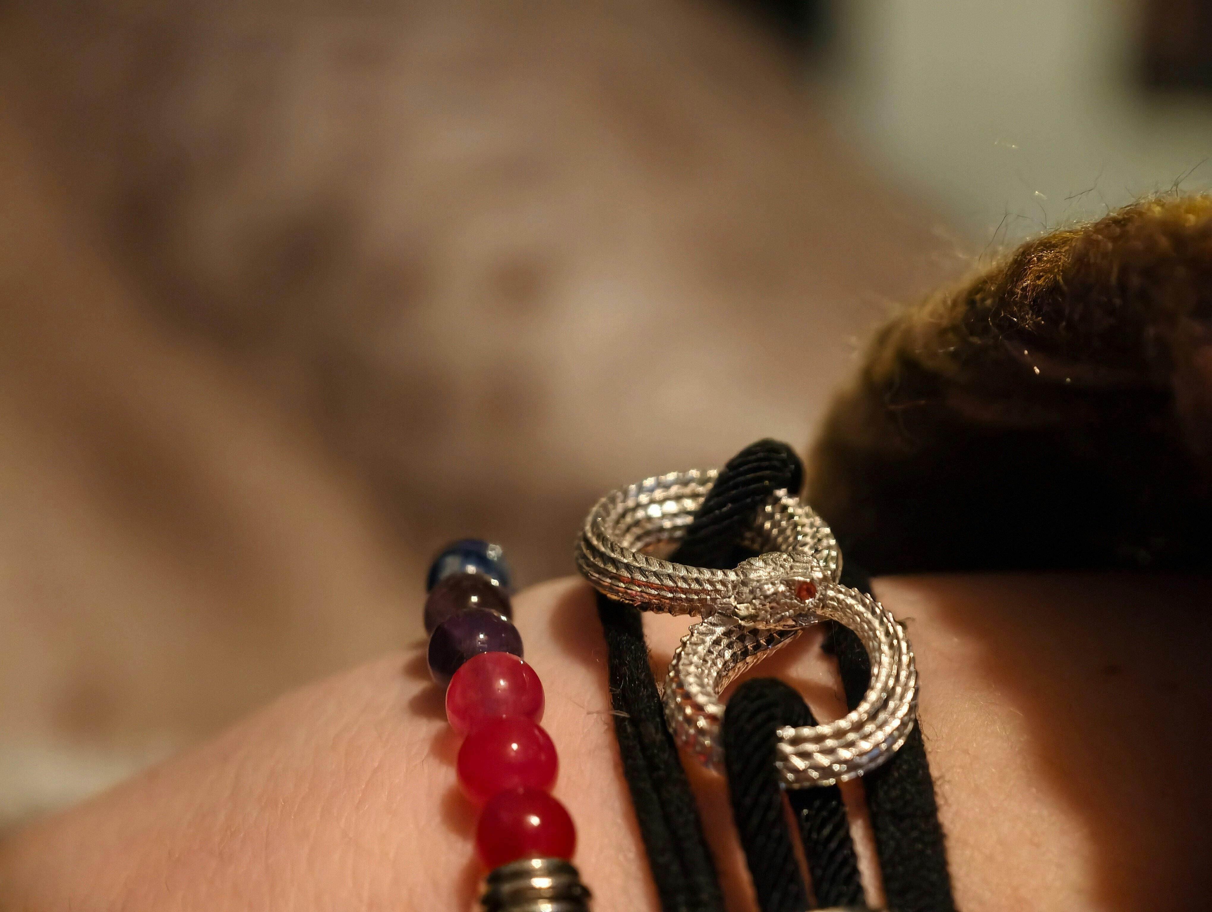 It looks like I have a baby pit-viper wrapped around my wrist, and it's somehow endearing to see it looking at me when I turn my wrist over 😂😍
