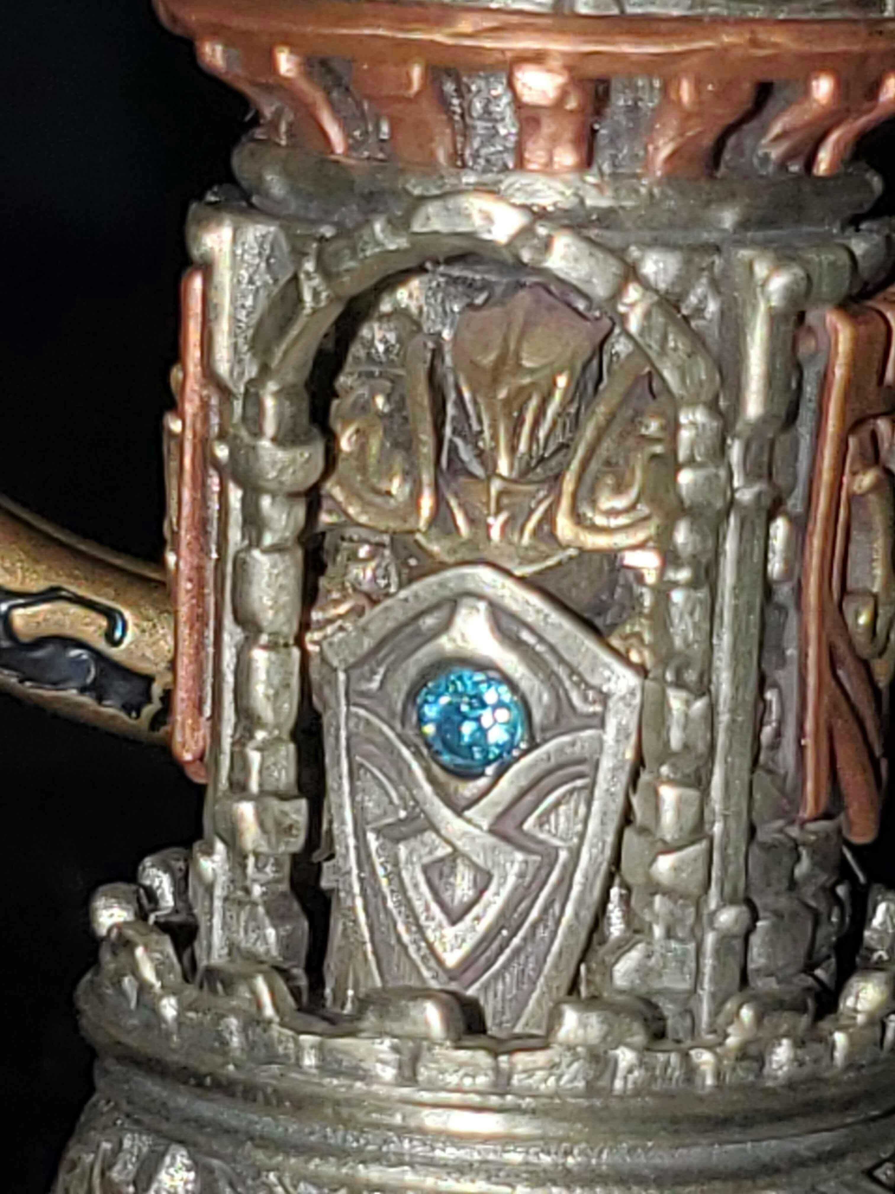 I received my Mech Justicar over a week ago, and have been too busy to write a proper review, but I mention this to emphasize on the fact that this craftsmanship is definitely worth the praise and effort to go out of my way and take the time to let the artist and any potential buyers know that you won't regret your purchase of any of their products. You can admire the details and aesthetics to no end, I am working on a proper display for these, but for now hope this pictures can highlight the intricate details, and I am personally glad I opted for the customized option of Lapis Lazuli, it looks beautiful.