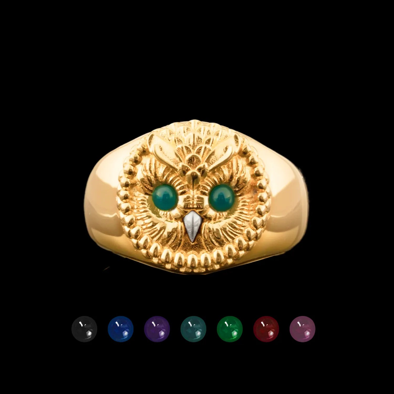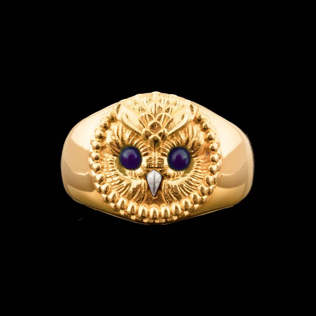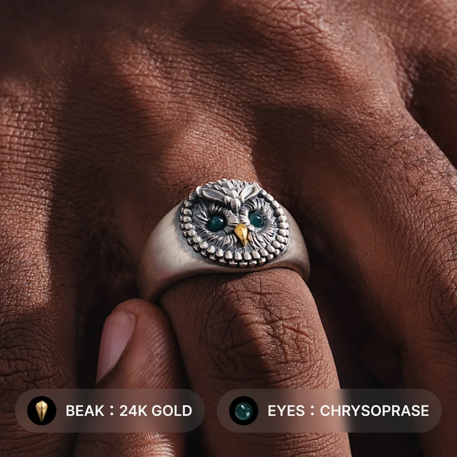 The Owl Ring is inspired by the owl, a timeless symbol of wisdom and knowledge. With their nocturnal habits and astute observation, owls embody hidden truths and the depth of wisdom.