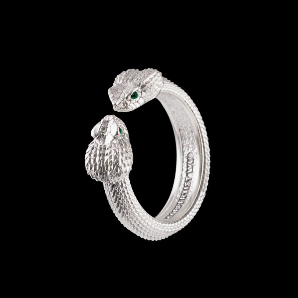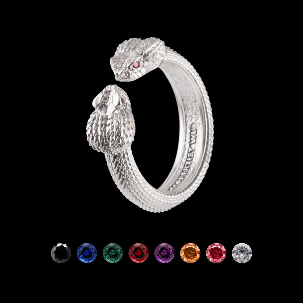 Inspired by the enigmatic Amphisbaena, a two-headed serpent, this ring delves into the profound theme of duality and binary opposition. The double-headed snake embodies contradictions and conflicts that are an inherent part of life's intricate tapestry. It mirrors the moral choices we face, the eternal struggle between good and evil within human nature, and the ceaseless interplay of light and darkness.