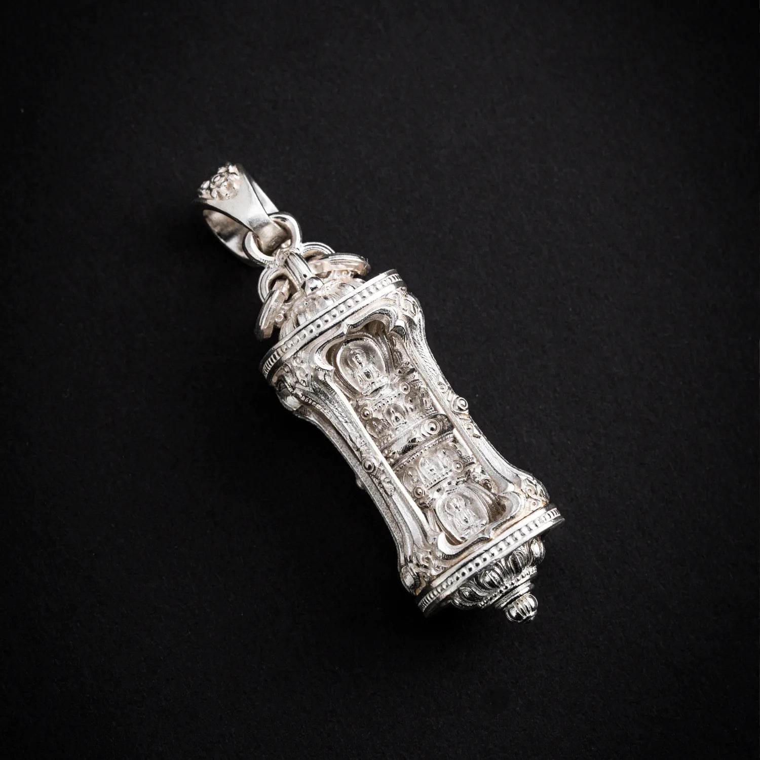 The Rotatable Buddha Pendant draws inspiration from the Northern Qi Dynasty's Thousand Buddha Pagoda, symbolizing liberation from worldly attachments and embodying a path to inner peace. Each Buddha statue, positioned with solemnity and grace, mirrors the tranquility and order of the ancient pagoda, inviting the wearer to embrace serenity and live with a mindful heart.