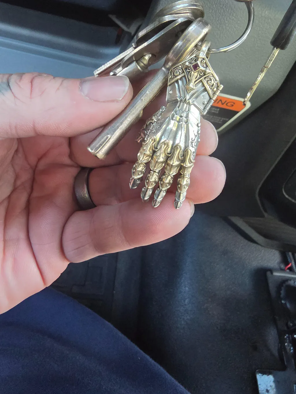 This piece blends medieval armor aesthetics with playful mechanical interactivity. The handplate opens in a two-stage motion, creating a subtle ritual as if unlocking real armor, while the articulated fingers allow simple gestures like OK, ✌️, or 🤘. It works as jewelry, a keychain charm, a bag accessory, or a collectible desk piece. Its symbolism, protection, resolve, and honor, makes it meaningful to wear and satisfying to handle.