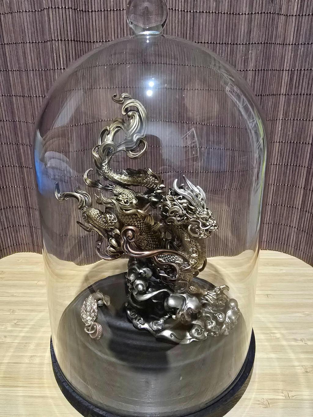 The dragon statue boasts exquisite craftsmanship with over a thousand meticulously sculpted scales and powerful, realistic claws that signify imperial authority. Made from a blend of bronze, 925 silver, and copper, its texture and materials reflect a deep reverence for both artistry and historical symbolism. The dynamic portrayal on a rolling auspicious cloud base enhances its natural flow and regal presence, making it a stunning piece of art.