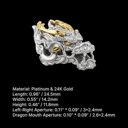Platinum & 24K Gold Dragon Three-way Bead